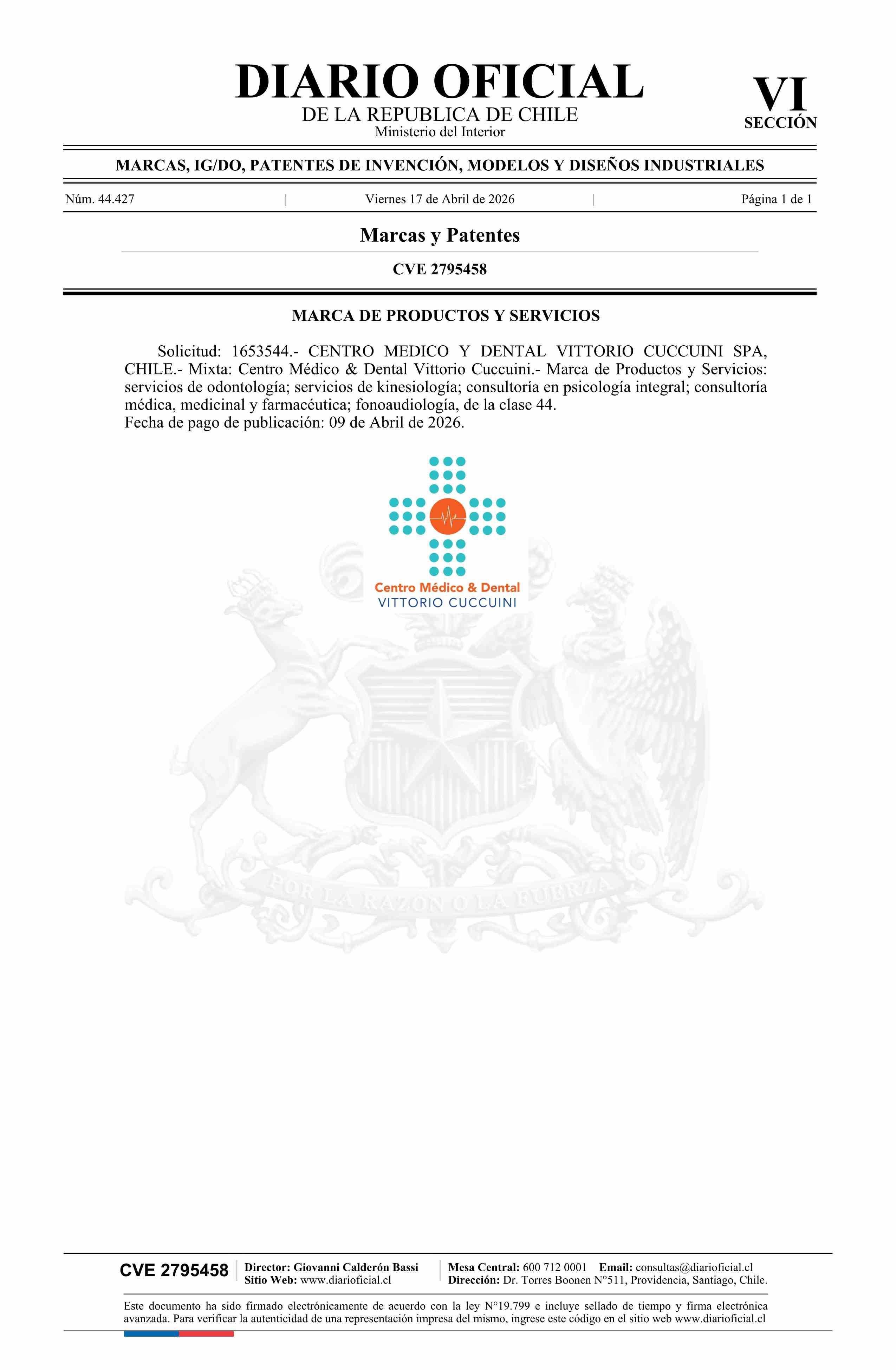 Solicitud número 1653544.- Centro Médico & Dental Vittorio Cuccuini 17-04-2026 Diario Oficial Edición Electrónica |