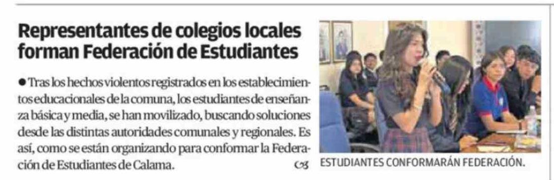 Representantes de colegios locales forman Federación de Estudiantes 05-04-2026 El Mercurio de Calama |