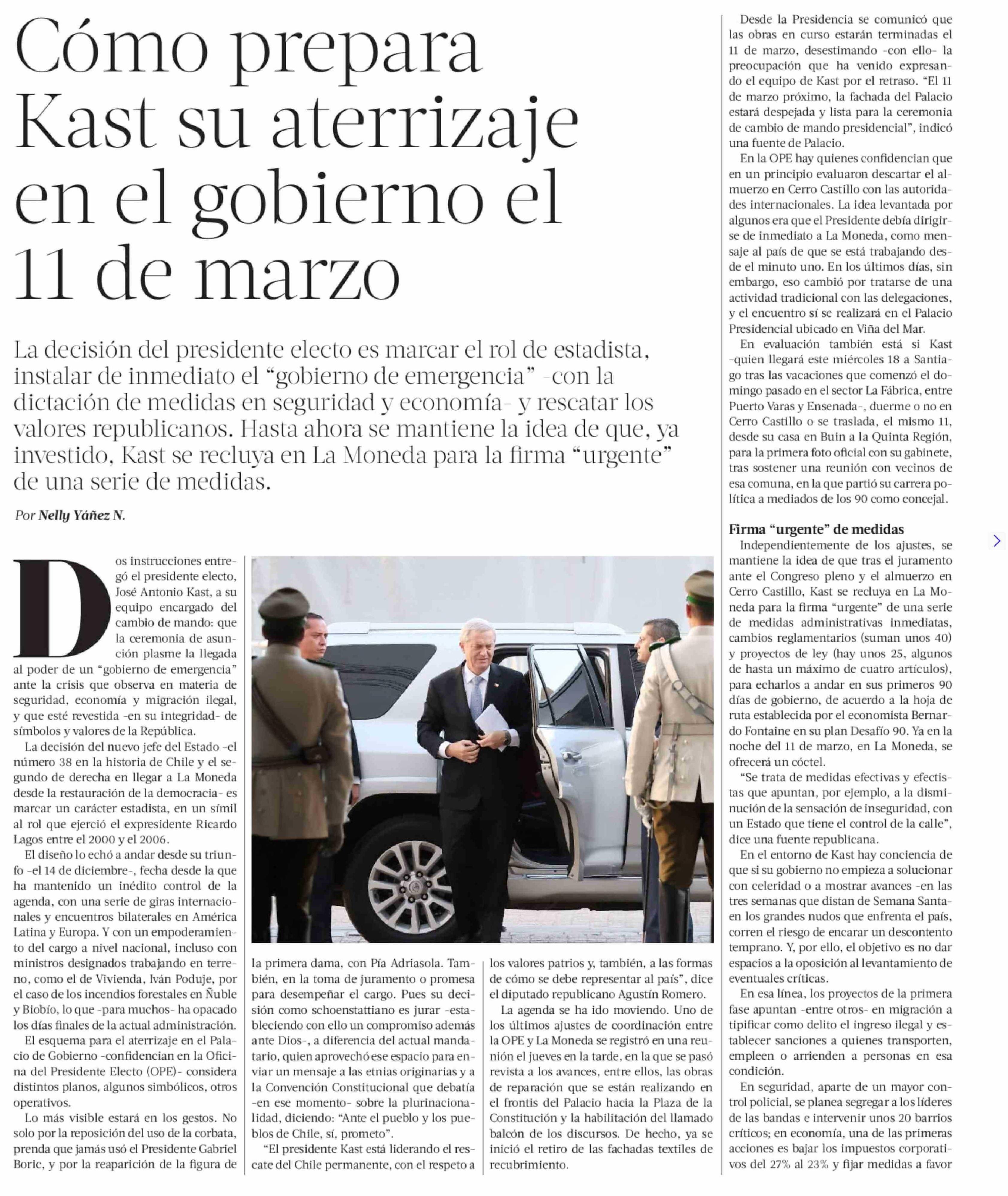 Cómo prepara Kast su aterrizaje en el gobierno el 11 de marzo 15-02-2026 La Tercera |