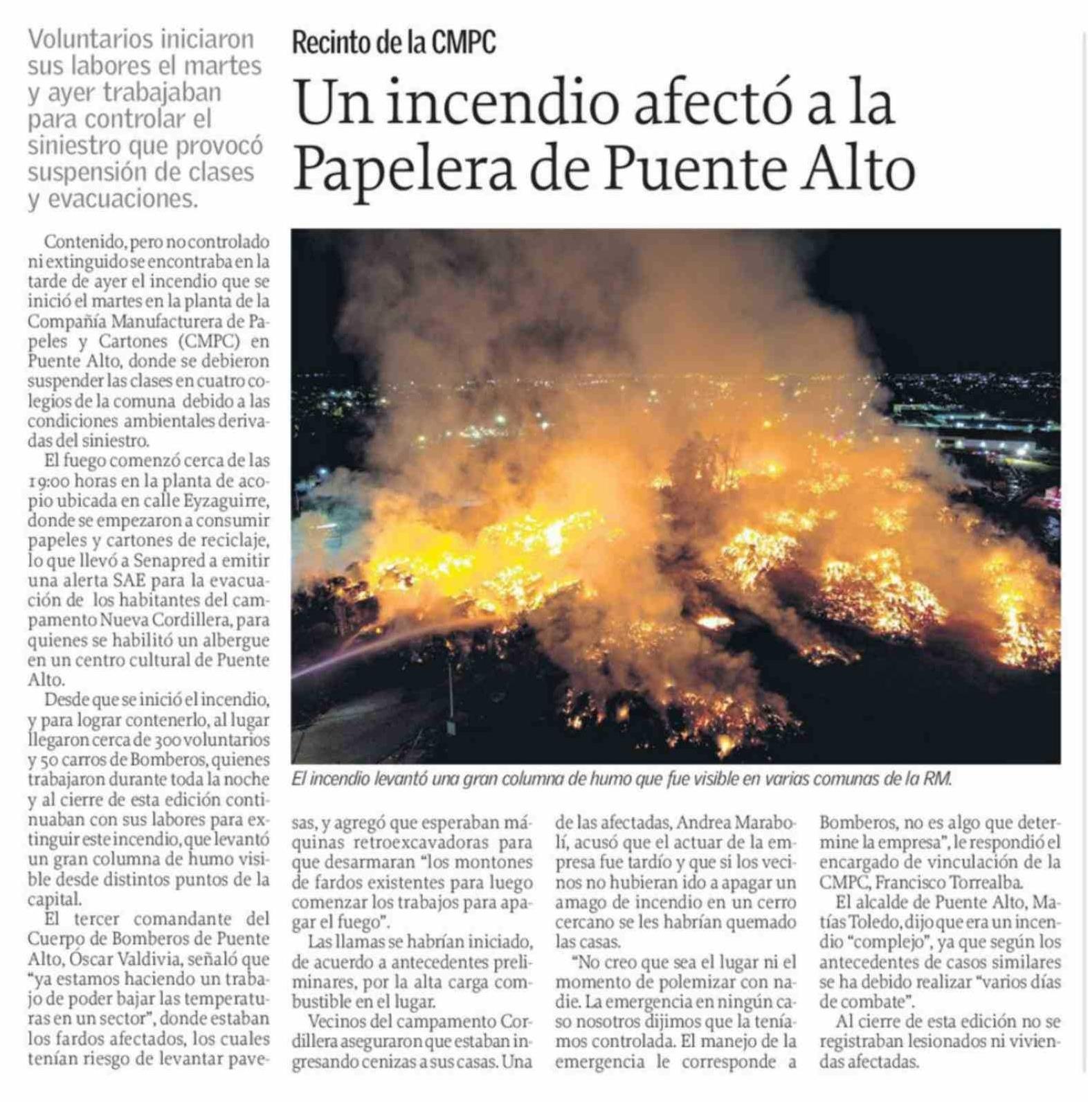 | Título: | Un incendio afectó a la Papelera de Puente Alto |