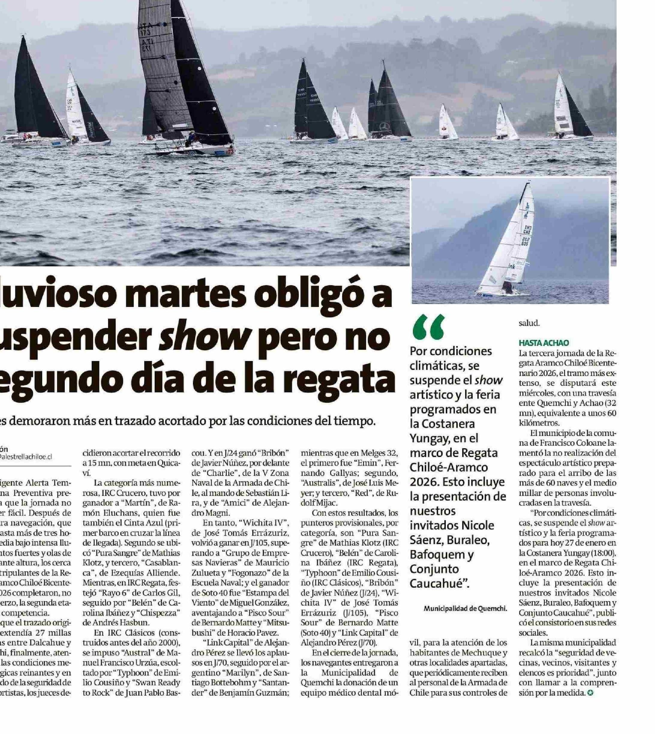 Título: Lluvioso martes obligó a suspender show pero no segundo día de la regata