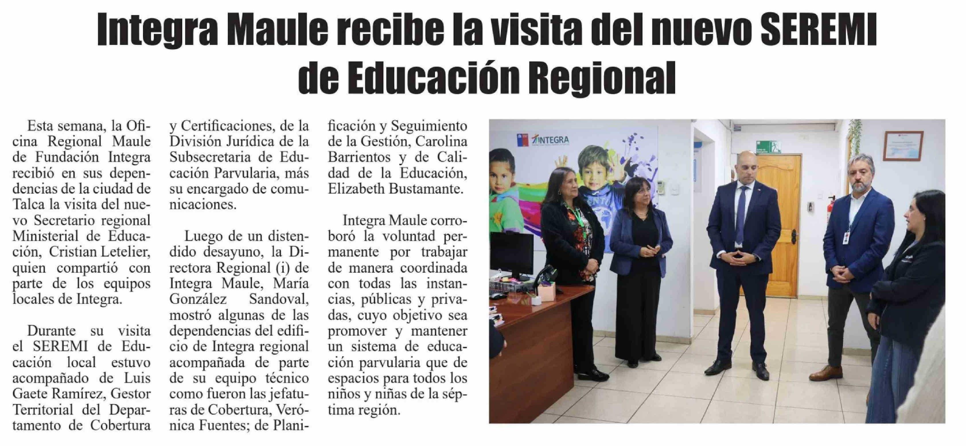 Integra Maule recibe la visita del nuevo SEREMI de Educación Regional 30-04-2026 El Heraldo |