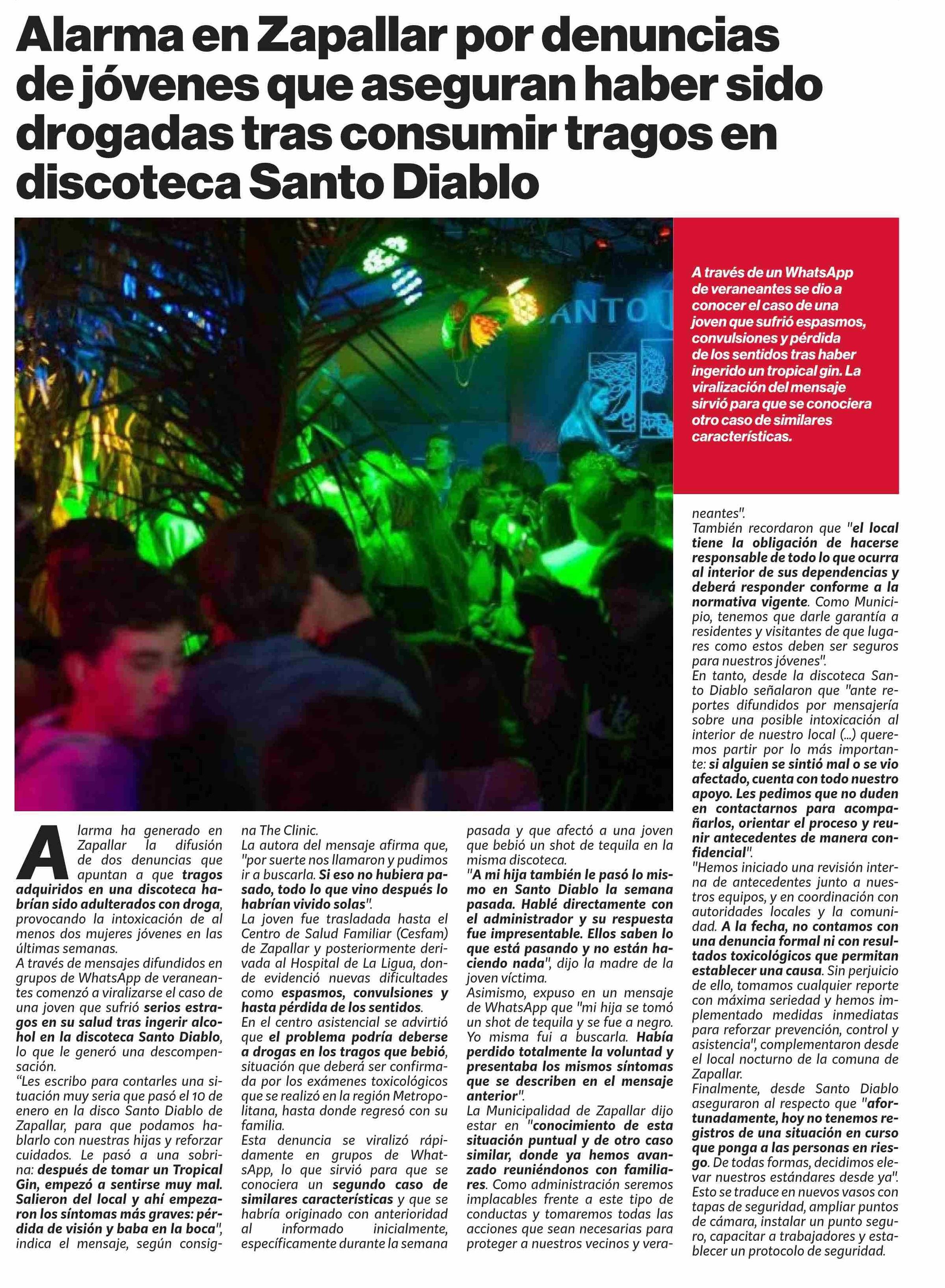| Título: | Alarma en Zapallar por denuncias de jóvenes que aseguran haber sido drogadas tras consumir tragos en discoteca Santo Diablo |