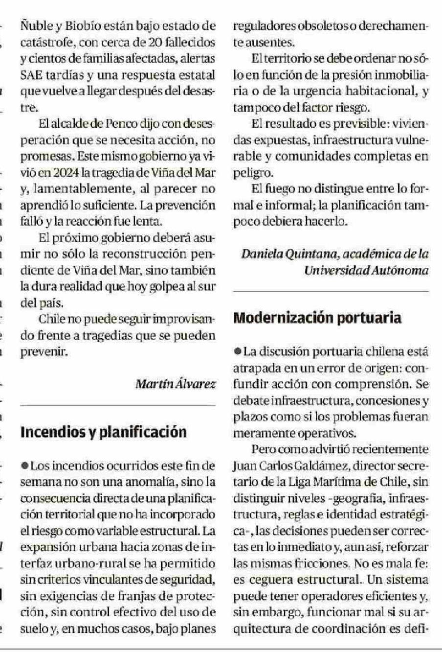 Cartas: Incendios y planificación 21-01-2026 El Llanquihue |