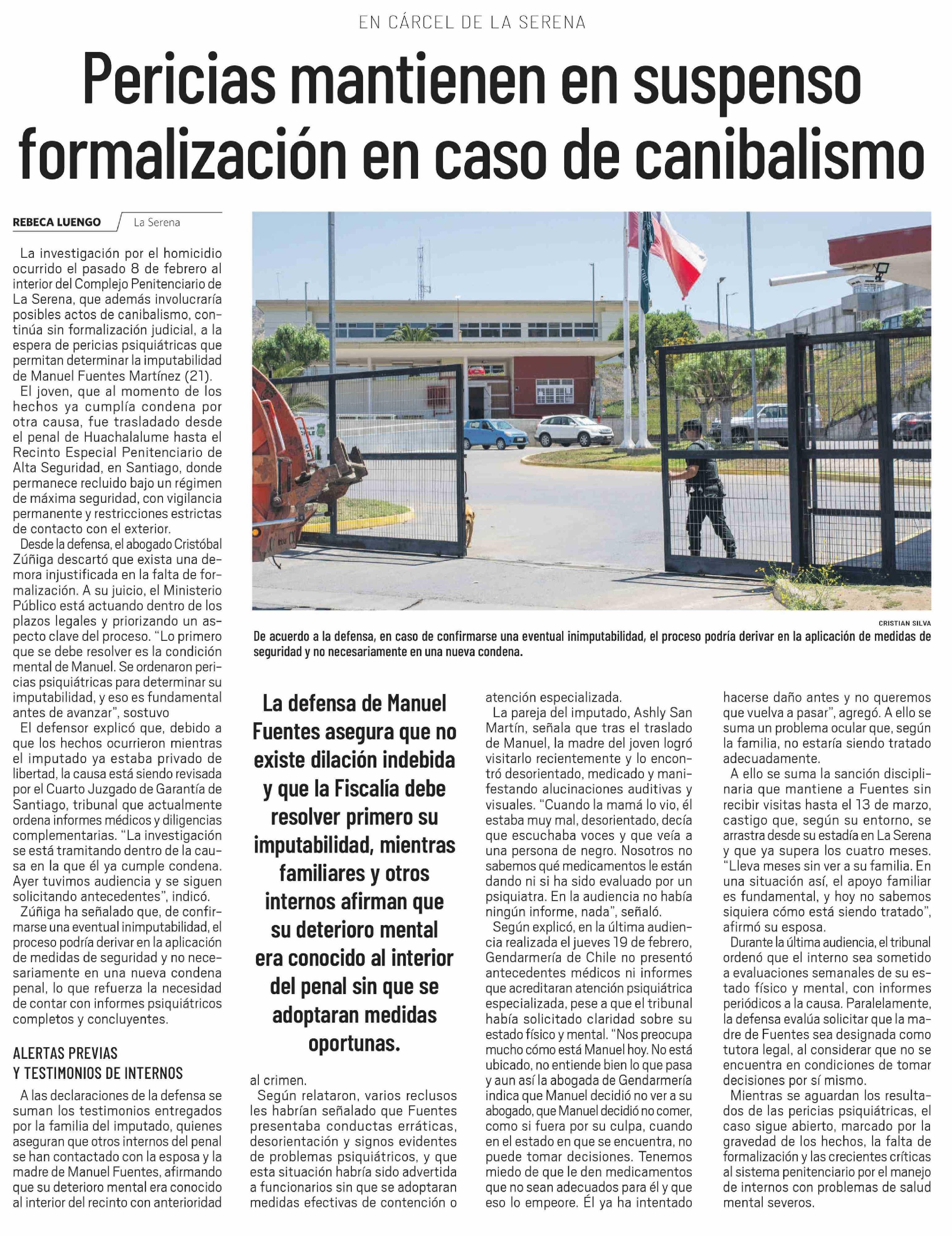 Pericias mantienen en suspenso formalización en caso de canibalismo 23-02-2026 El Día |