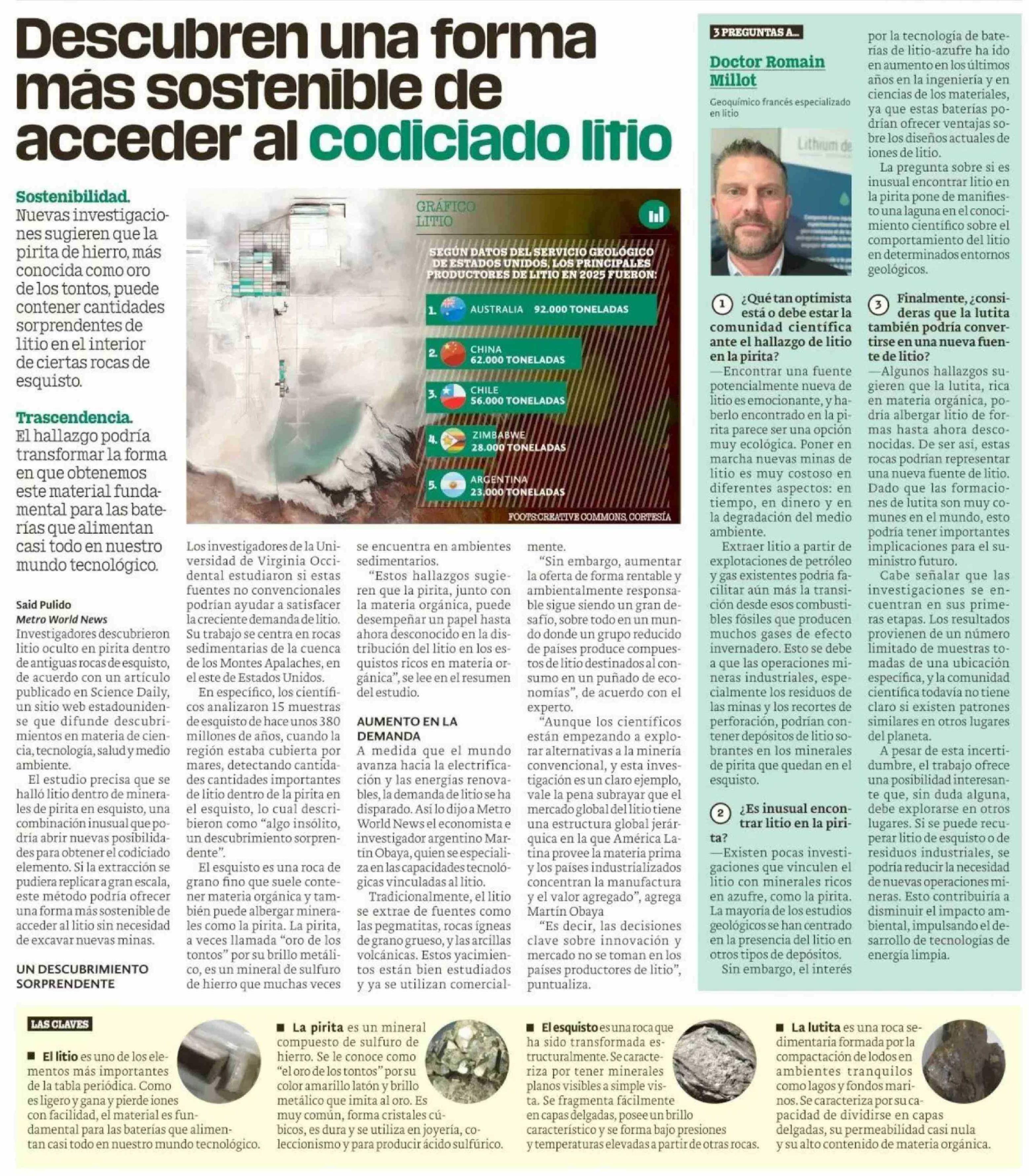 Descubren una forma más sostenible de acceder al codiciado litio 23-04-2026 Publimetro |
