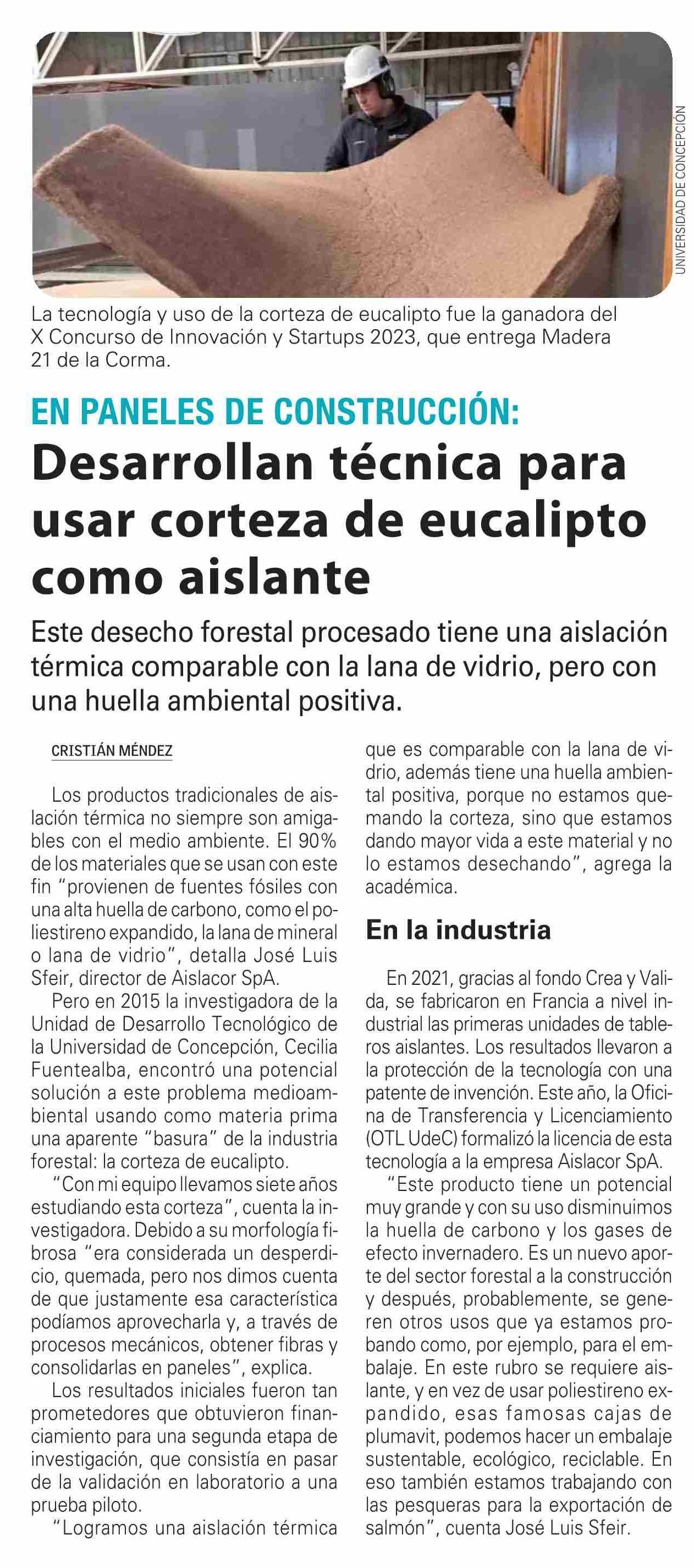 Desarrollan técnica para usar corteza de eucalipto como aislante 29-09-2023 El Mercurio |