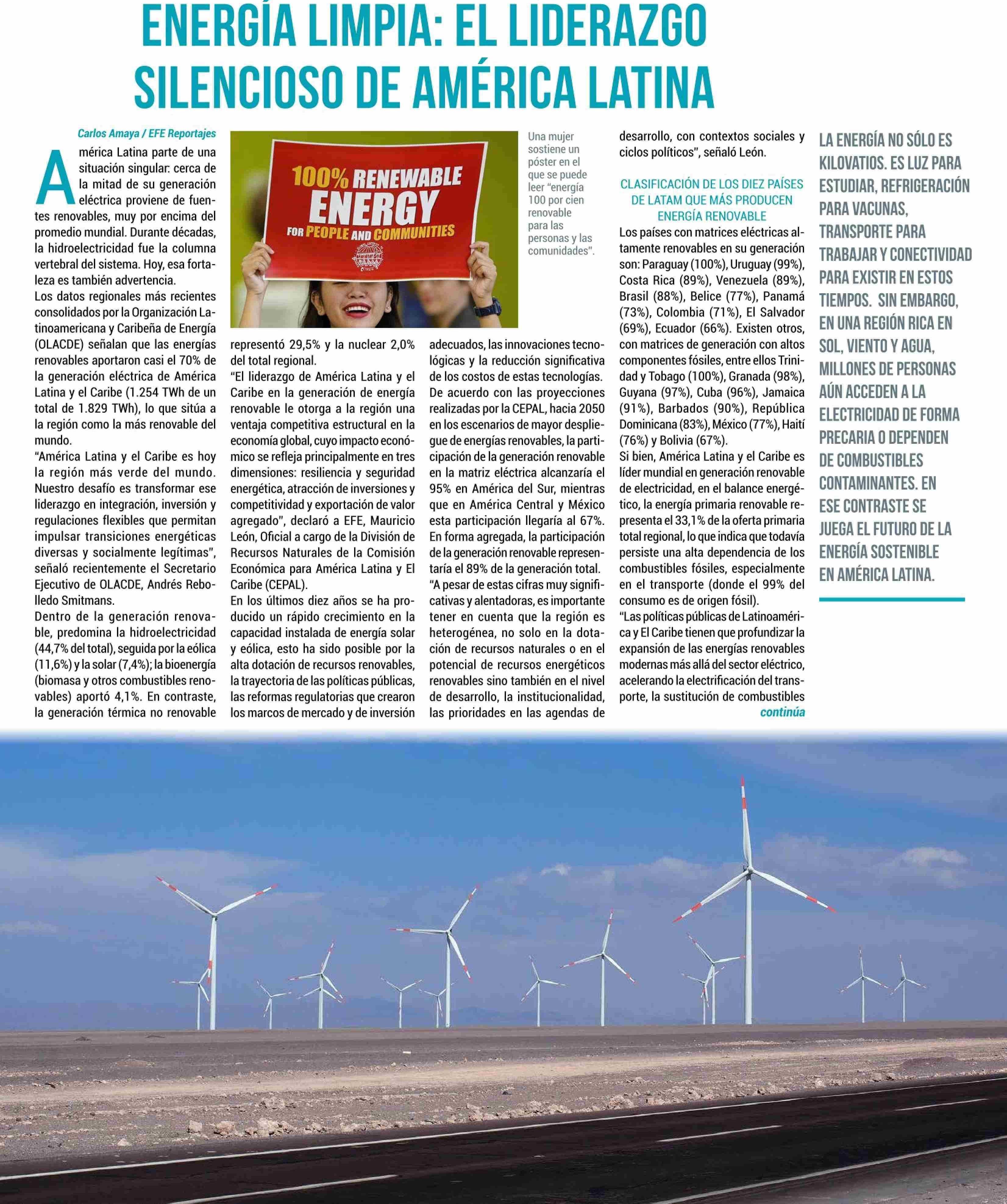ENERGIA LIMPIA: EL LIDERAZGO SILENCIOSO DE AMERICA LATINA 04-04-2026 El Rancagüino |