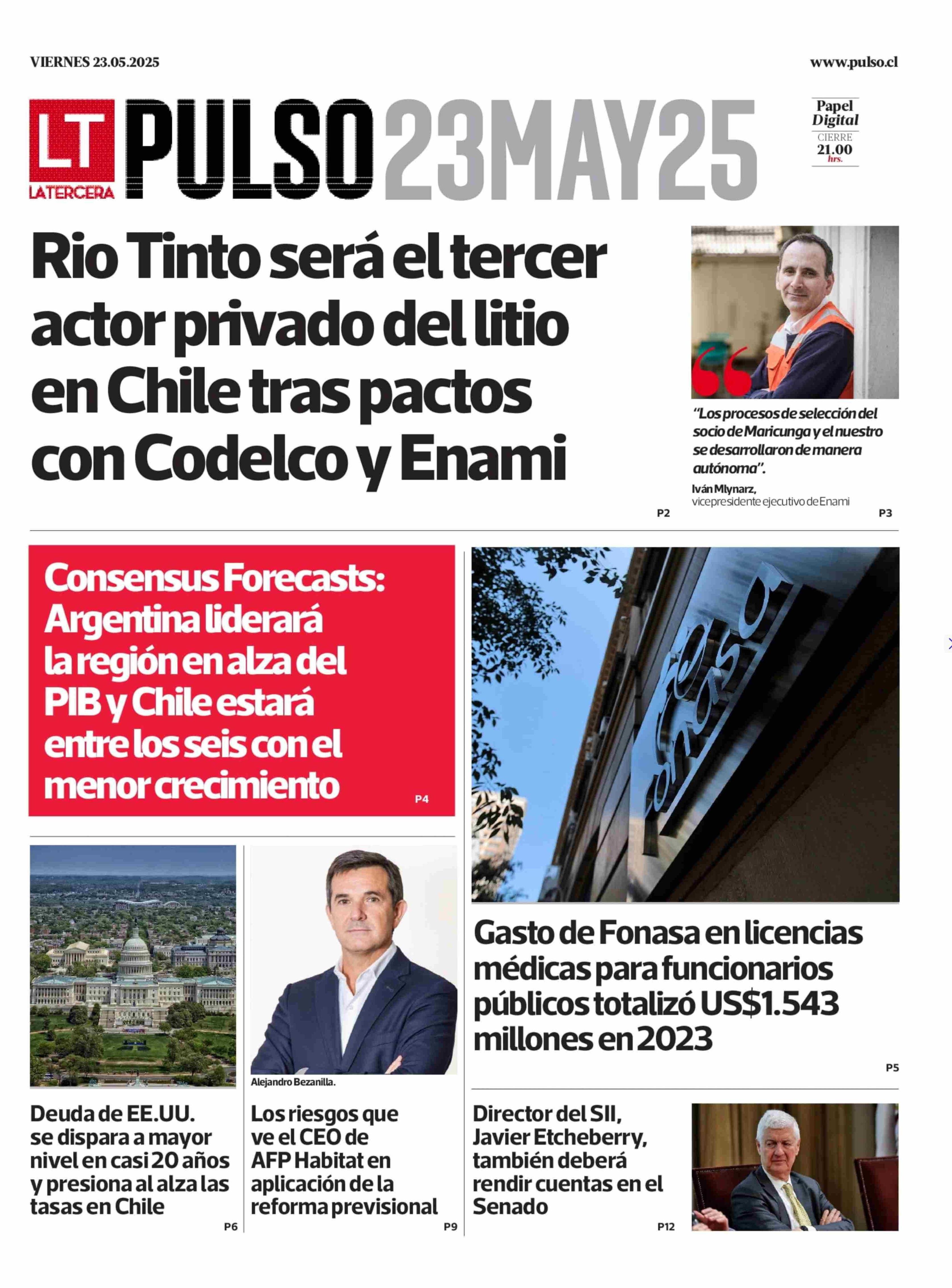PORTADA LA TERCERA (PULSO) - CHILE 23-05-2025 La Tercera |
