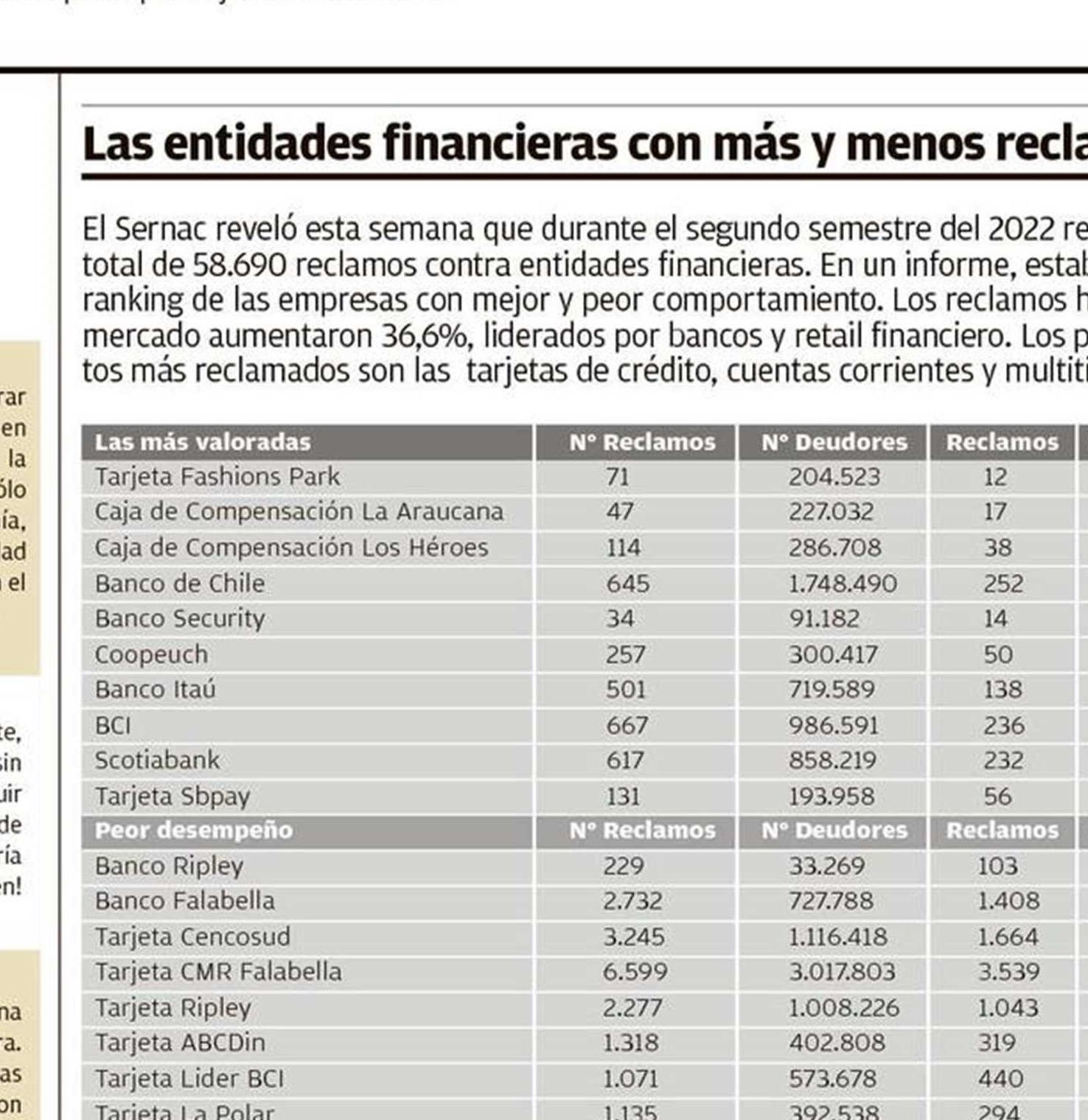 Las entidades financieras con más y menos reclamos 07-05-2023 El Llanquihue |