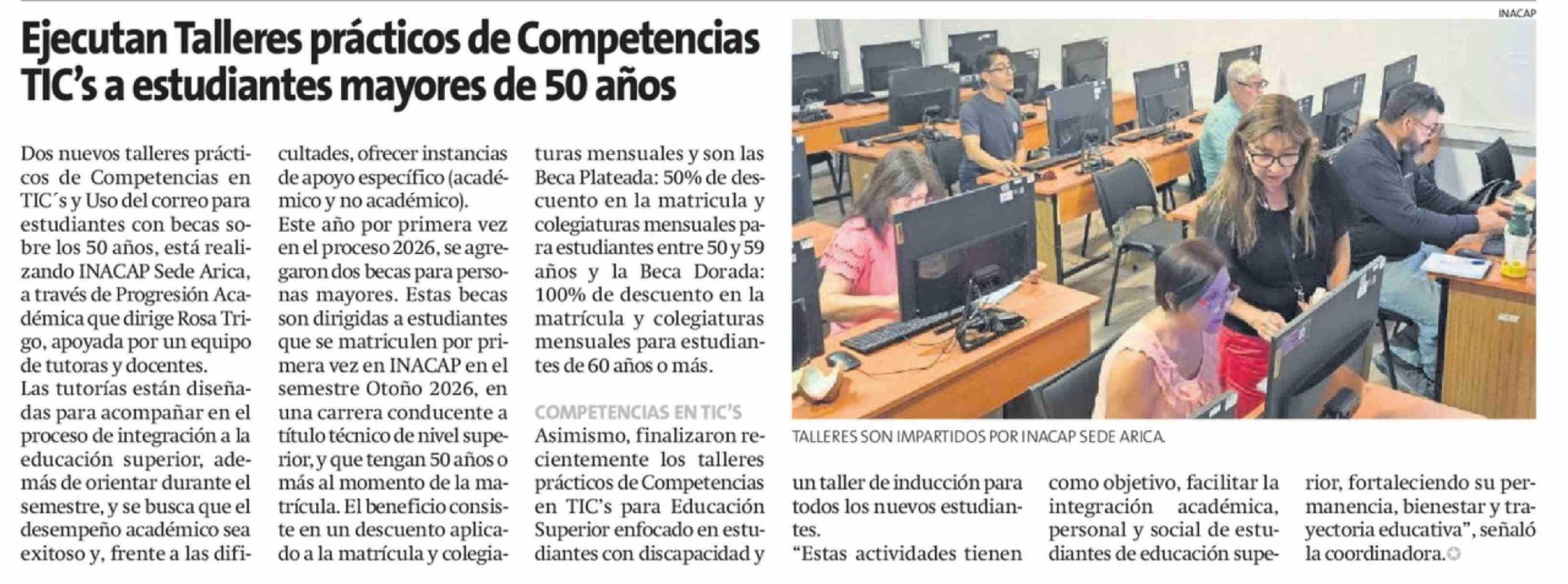 Ejecutan Talleres prácticos de Competencias TIC's a estudiantes mayores de 50 años 10-02-2026 La Estrella de Arica |