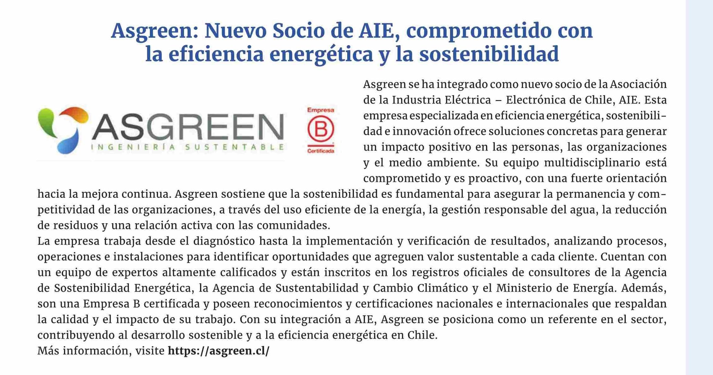 Título: Asgreen: Nuevo Socio de AIE, comprometido con la eficiencia energética y la sostenibilidad