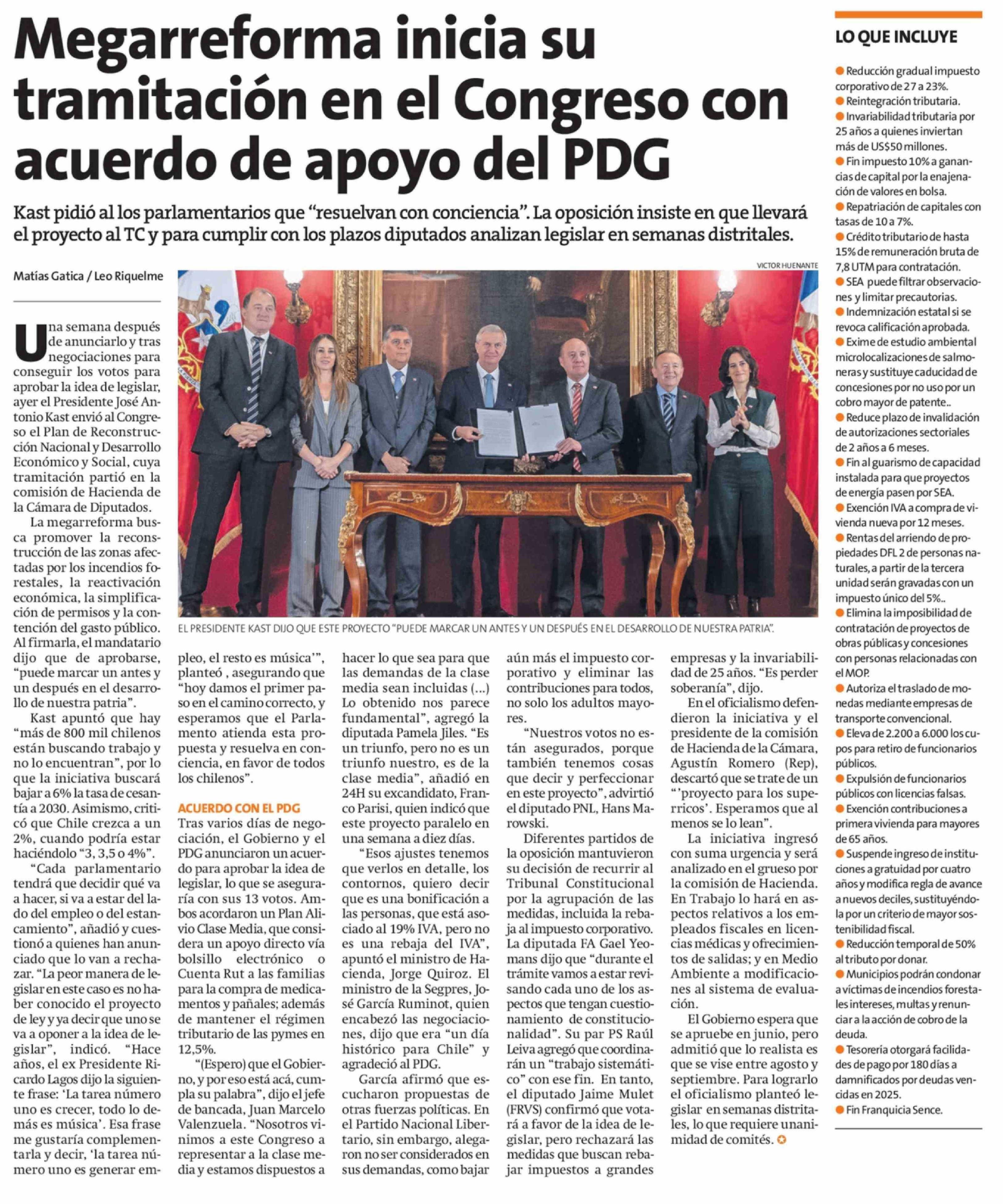 Título: Megarreforma inicia su tramitación en el Congreso con acuerdo de apoyo del PDG
