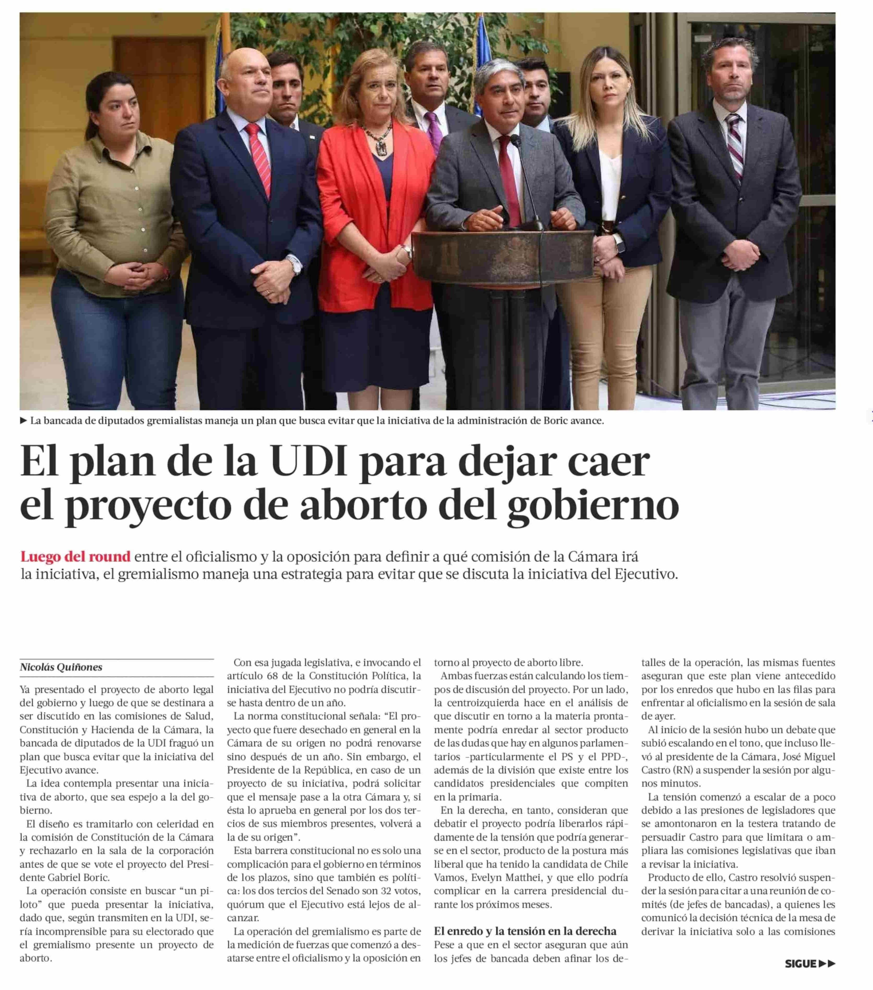 | Título: | El plan de la UDI para dejar caer el proyecto de aborto del gobierno |