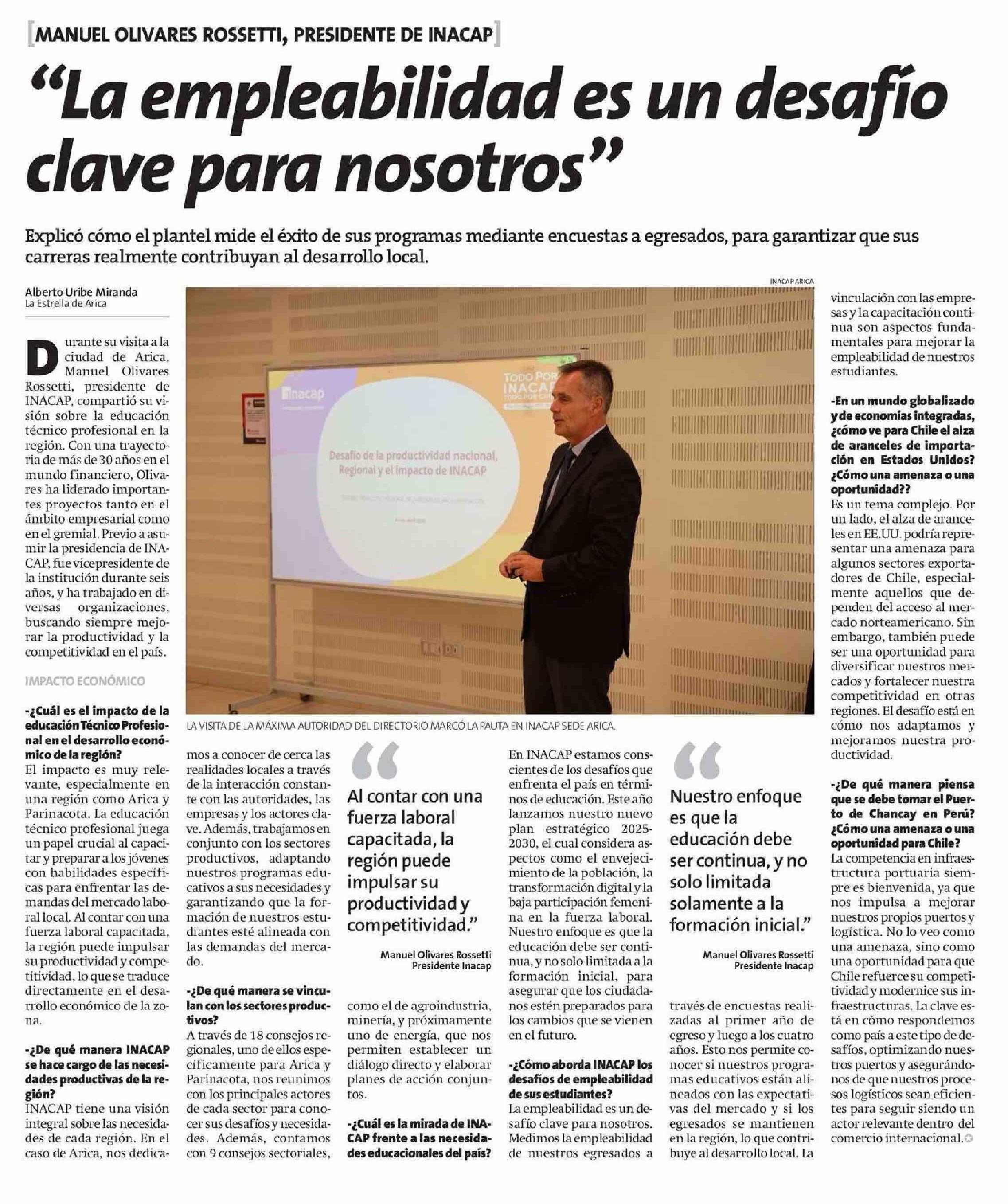 “La empleabilidad es un desafio clave para nosotros” 14-04-2025 La Estrella de Arica |