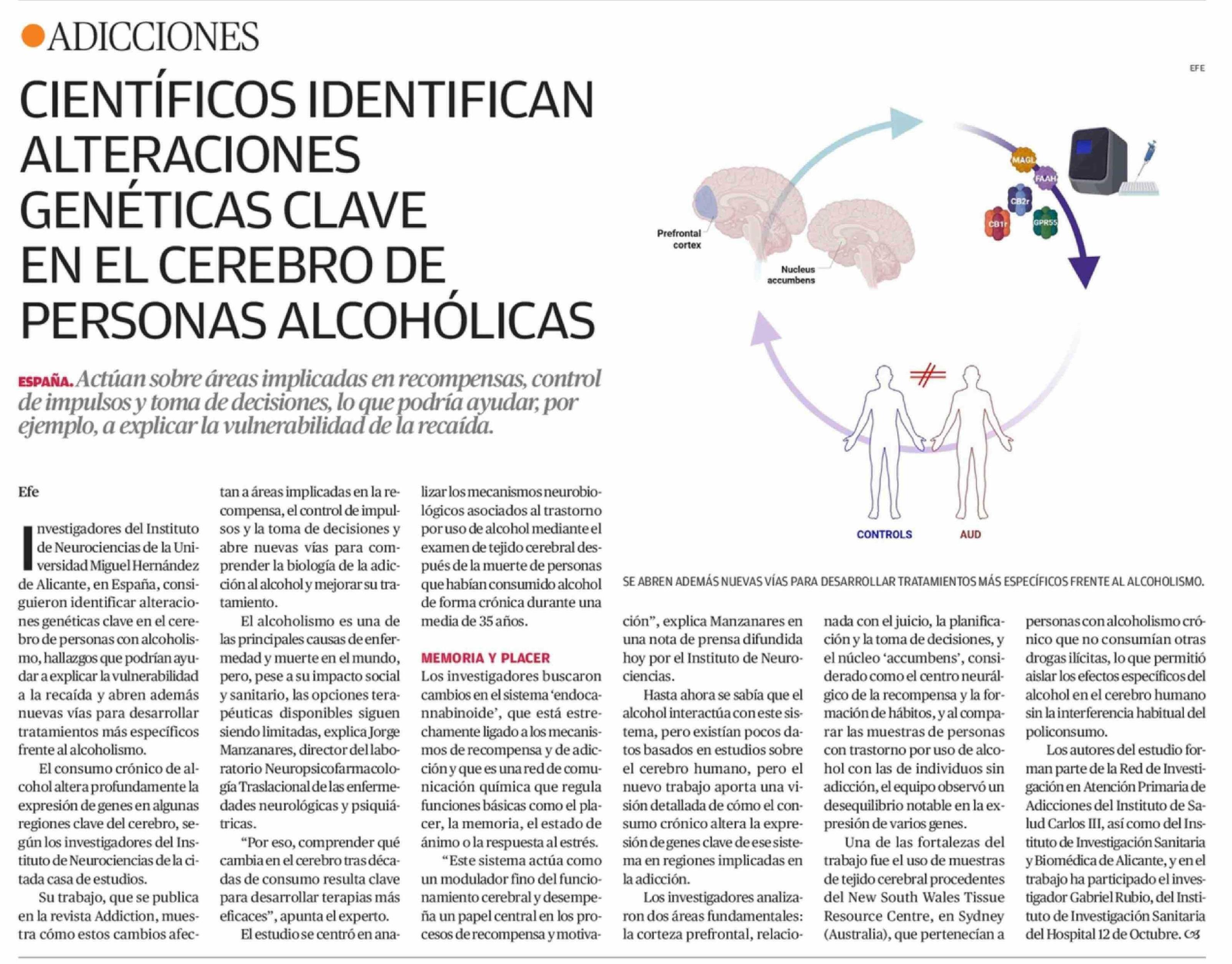 Título: CIENTÍFICOS IDENTIFICAN ALTERACIONES GENÉTICAS CLAVE EN EL CEREBRO DE PERSONAS ALCOHÓLICAS