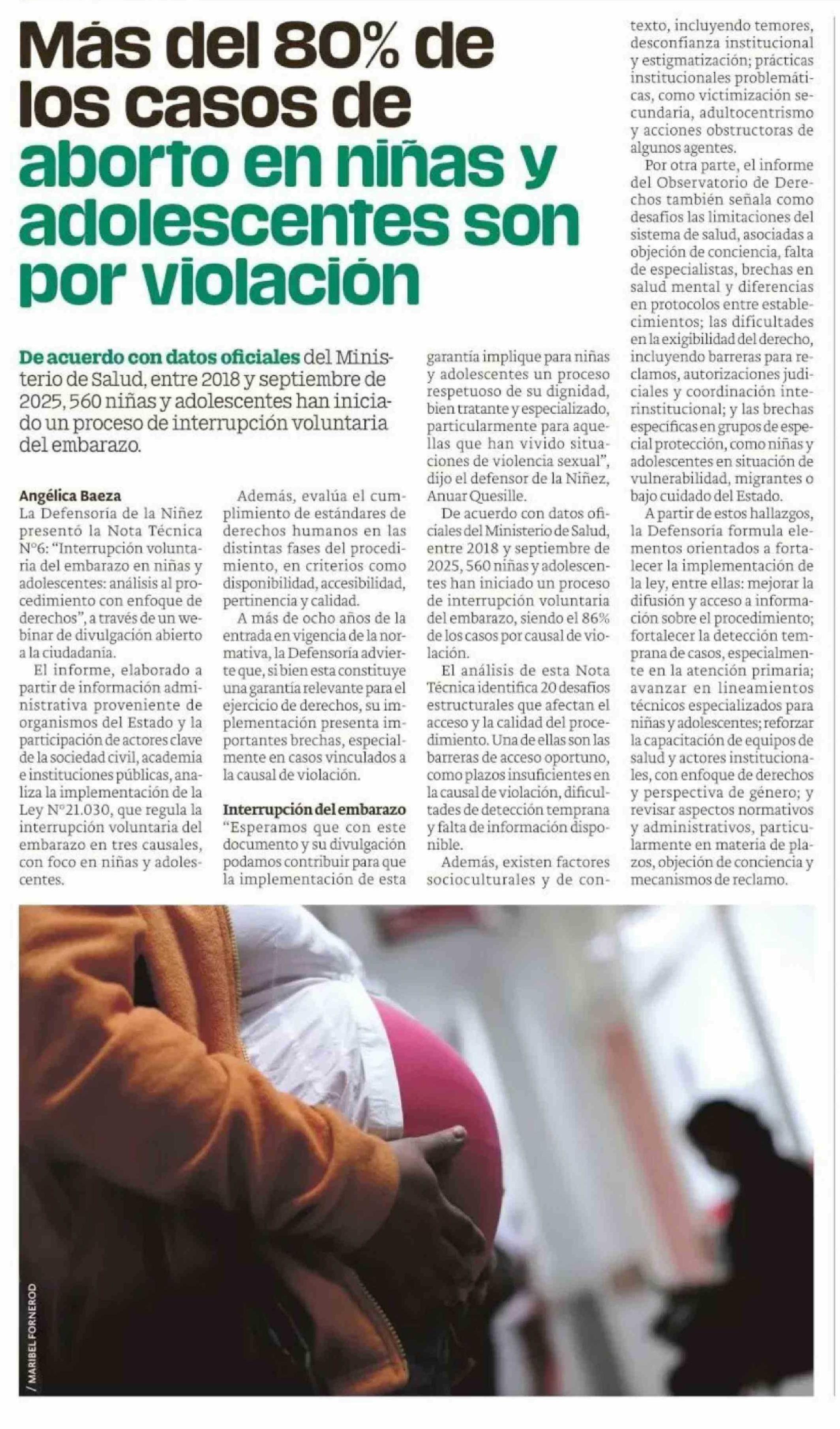 | Título: | Más del 80% de los casos de aborto en niñas y adolescentes son por violación |