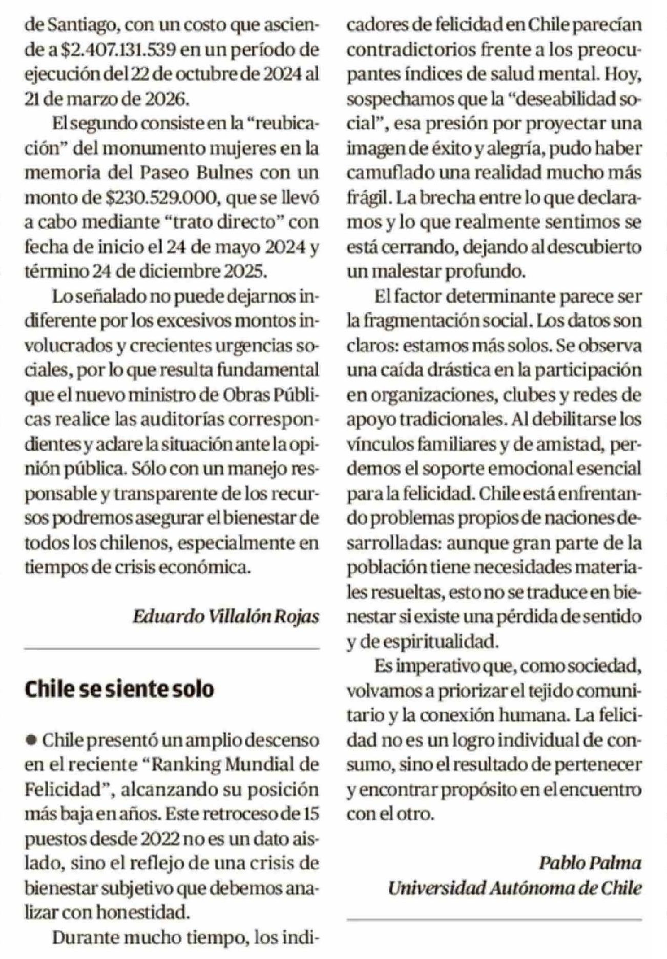 CARTAS: Chile se siente solo