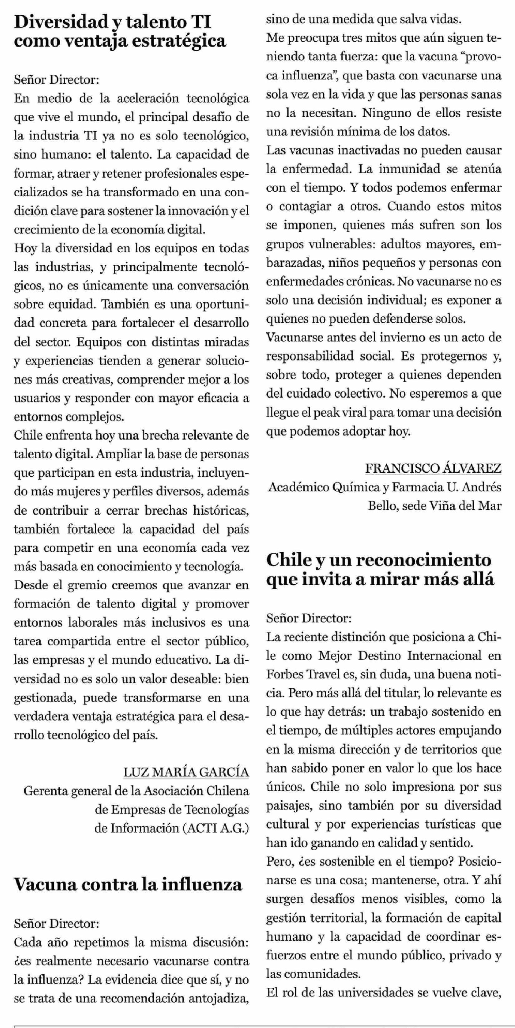 Cartas: Vacuna contra la influenza 28-03-2026 La Prensa de Curicó |