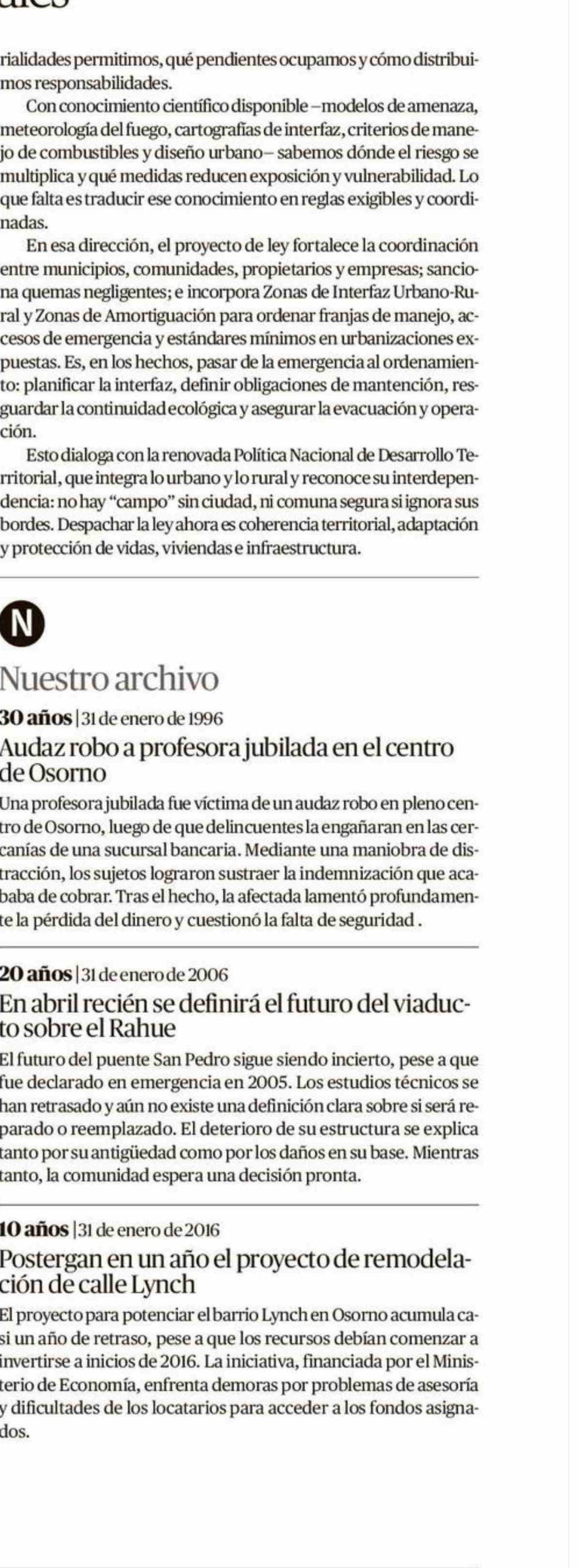 Fecha: 31-01-2026 Sector: Columnas de Opinión Región: Región de Los Lagos