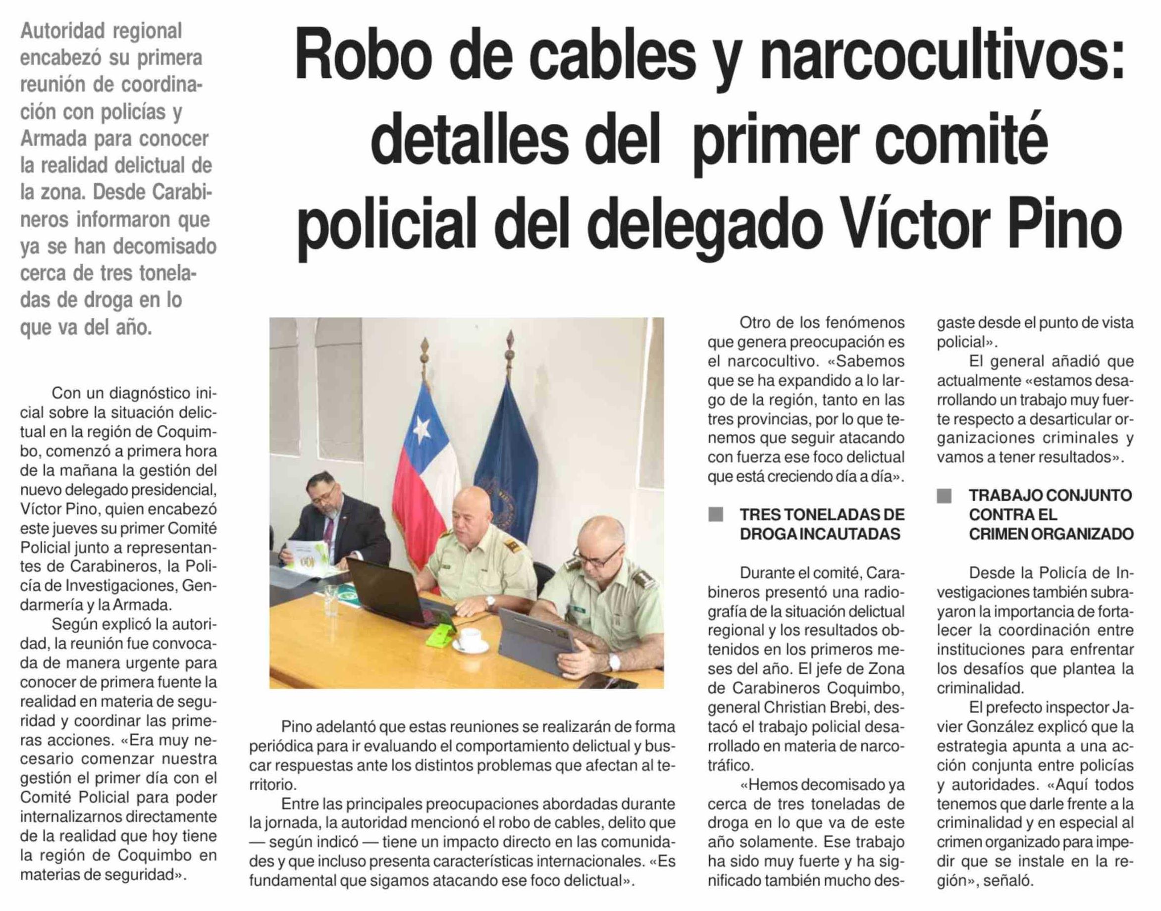 Título: Robo de cables y narcocultivos: detalles del primer comité policial del delegado Víctor Pino