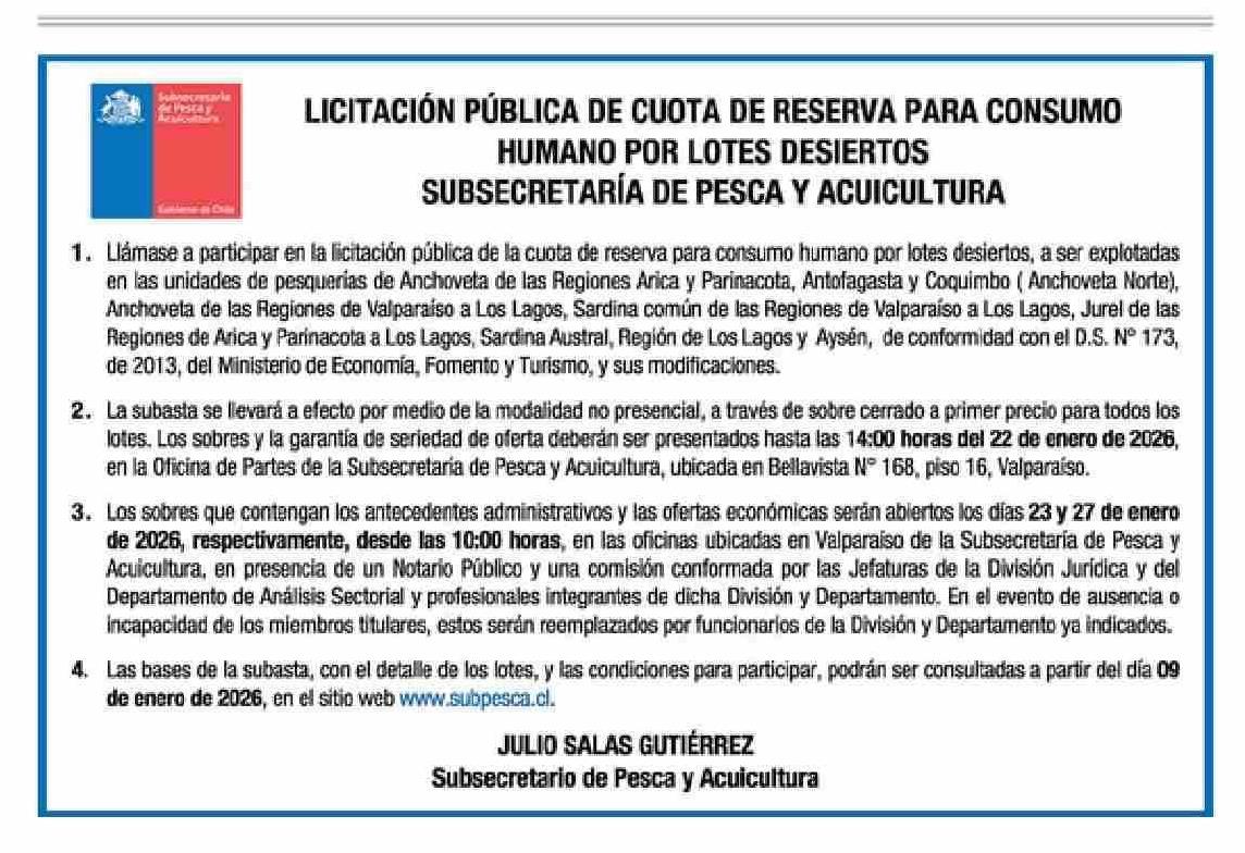 Título: Aviso Licitaciones: SUBSECRETARÍA DE PESCA Y ACUICULTURA