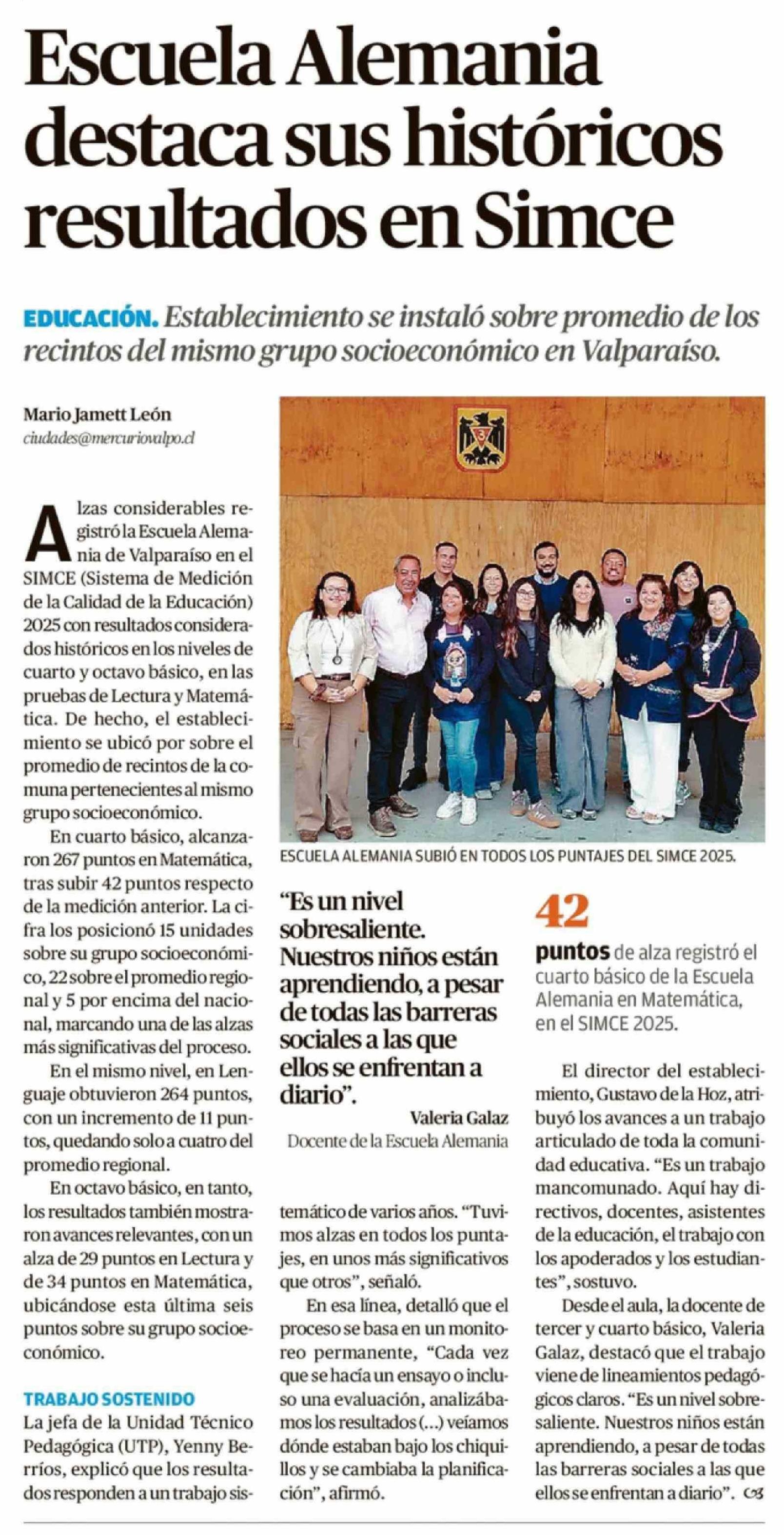 Título: Escuela Alemania destaca sus históricos resultados en Simce