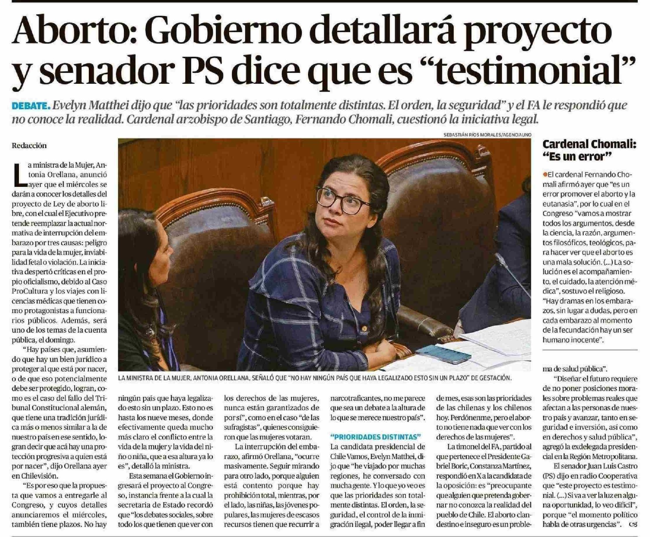 Título: Aborto: Gobierno detallará proyecto y senador PS dice que es "testimonial"