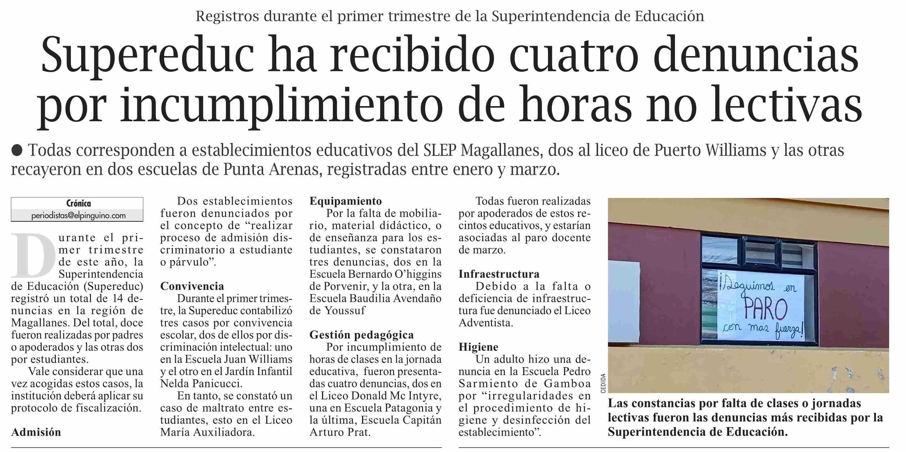 Supereduc ha recibido cuatro denuncias por incumplimiento de horas no lectivas 25-04-2025 El Pingüino |
