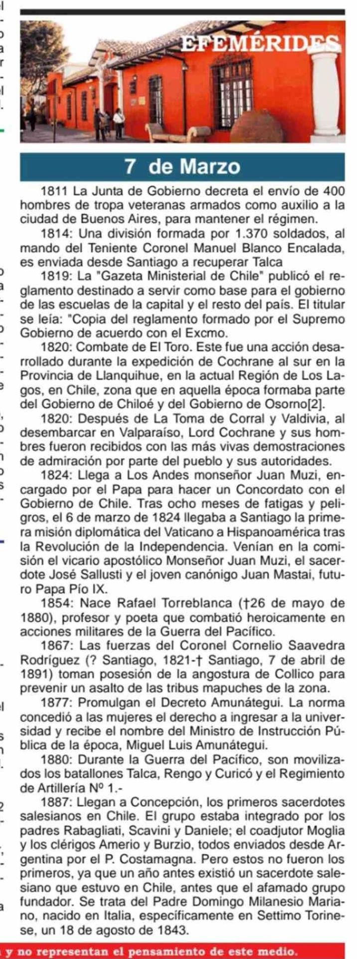 EFEMÉRIDES 07-03-2026 Maule Hoy |