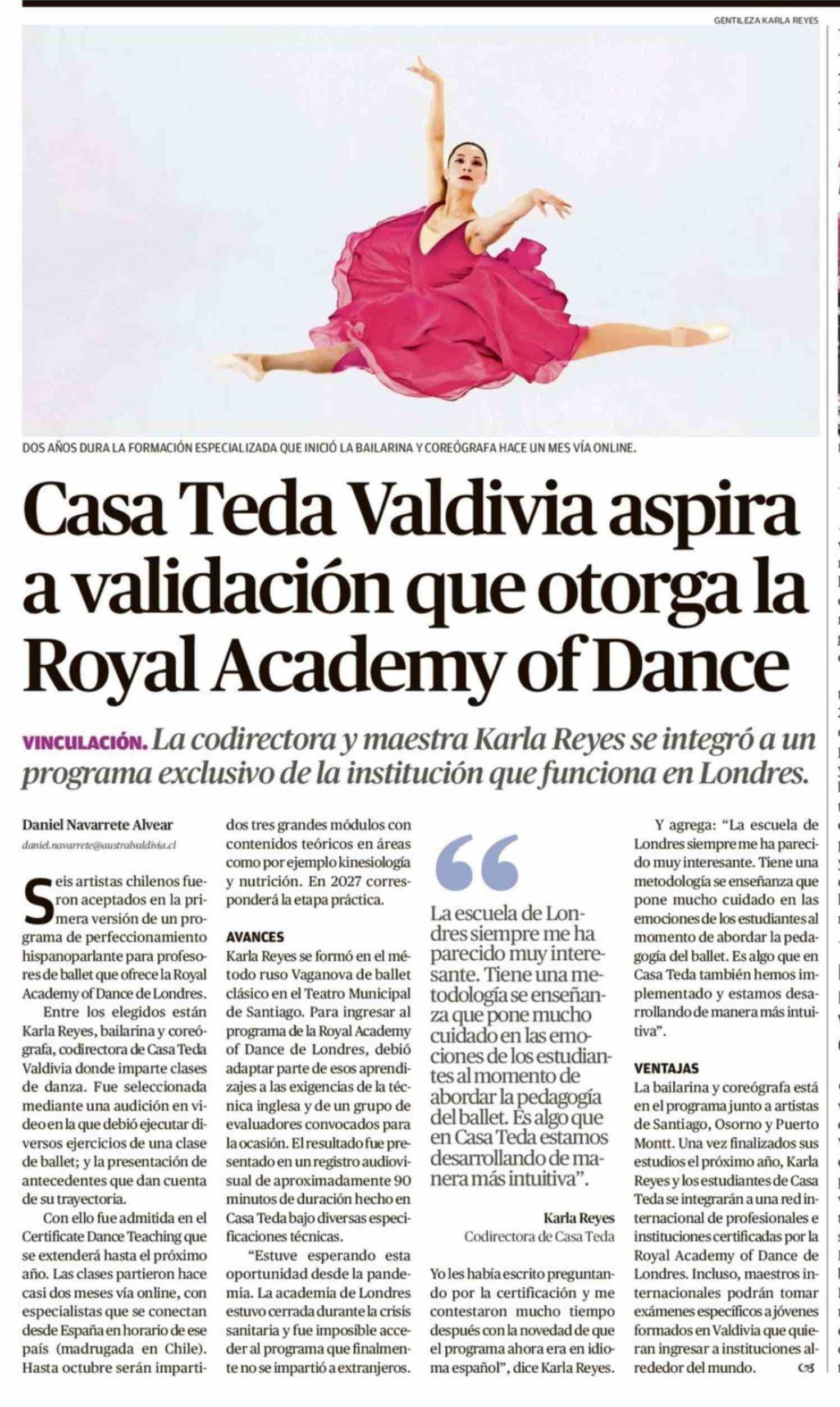 Título: Casa Teda Valdivia aspira a validación que otorga la Royal Academy of Dance