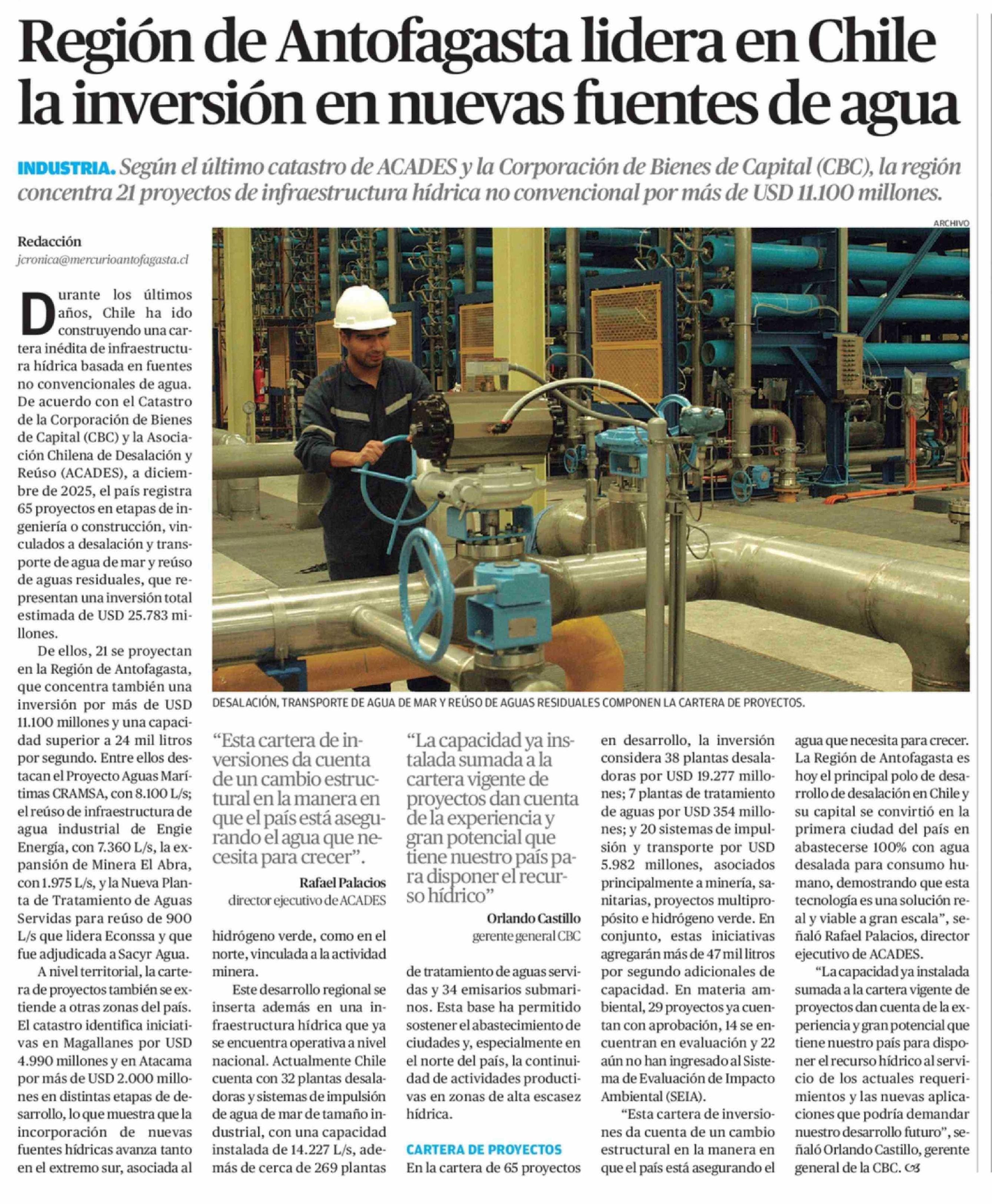 Título: Región de Antofagasta lidera en Chile la inversión en nuevas fuentes de agua