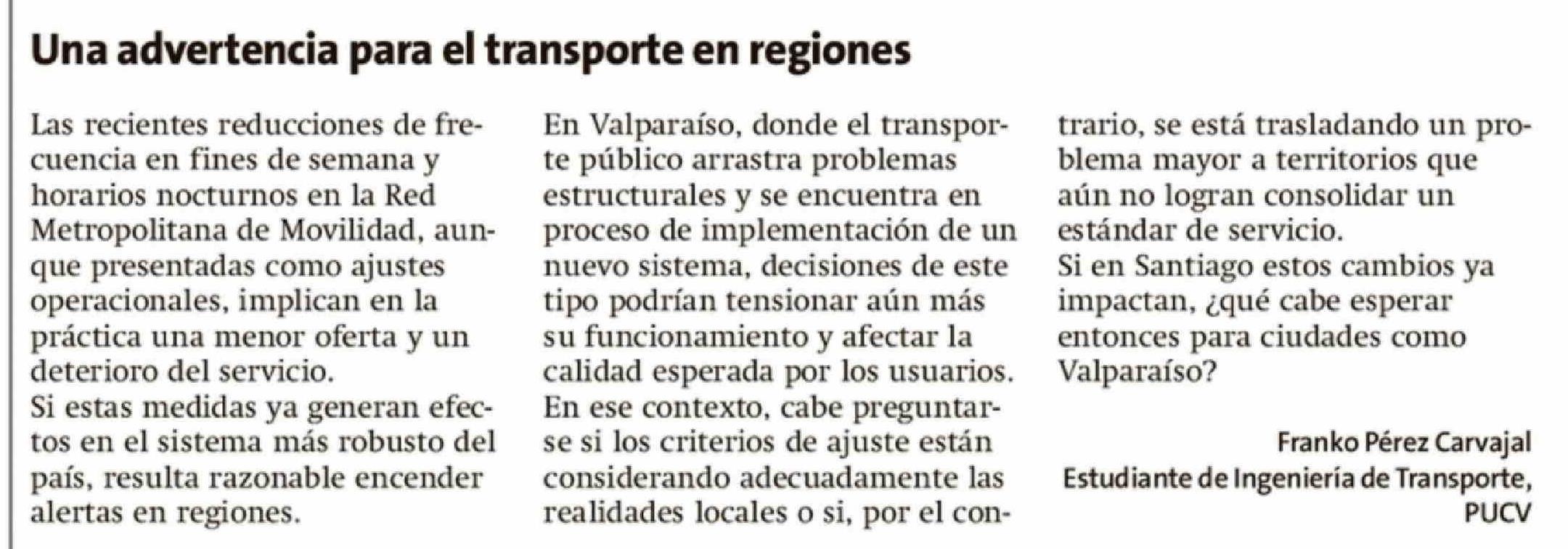| Título: | Cartas: Una advertencia para el transporte en regiones |