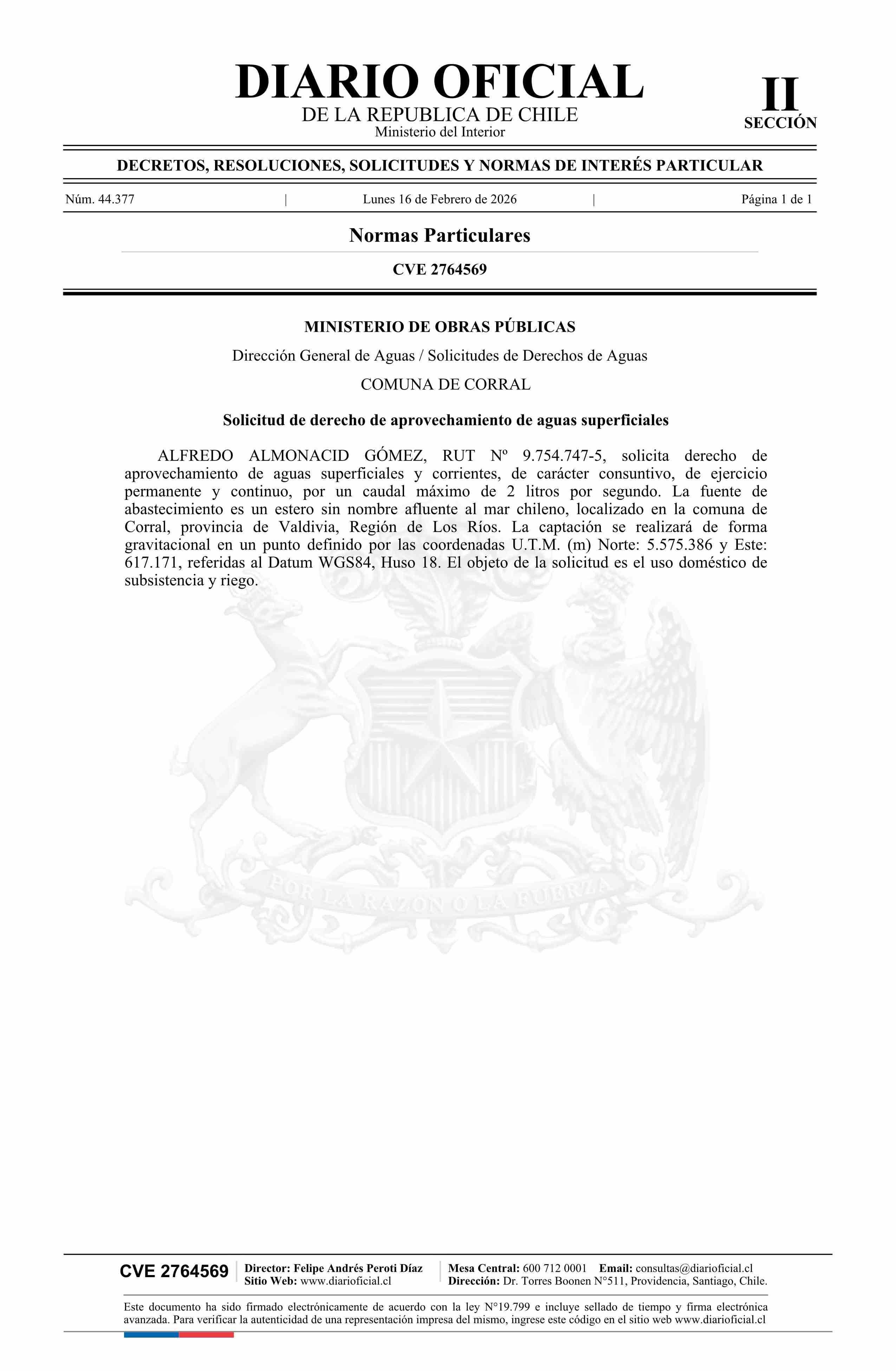 Fuente: Diario Oficial Edición Electrónica (Diario Oficial de Chile - 2 Normas Particulares) Página(s): 184