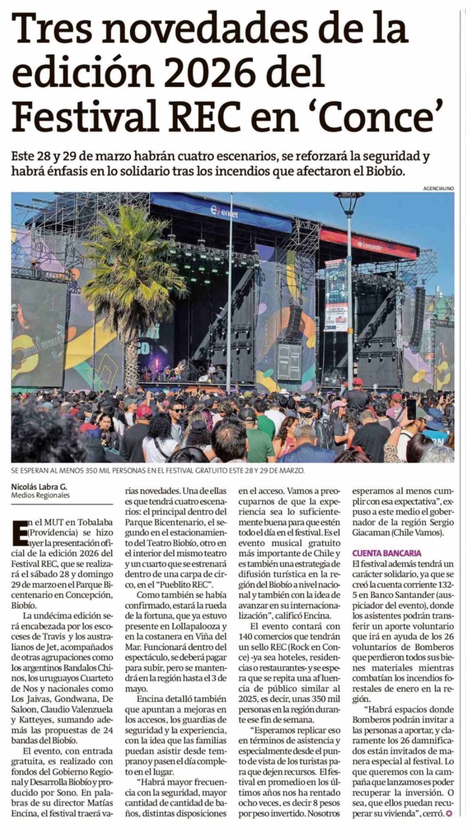 Tres novedades de la edición 2026 del Festival REC en 'Conce' 06-03-2026 La Estrella de Chiloé |