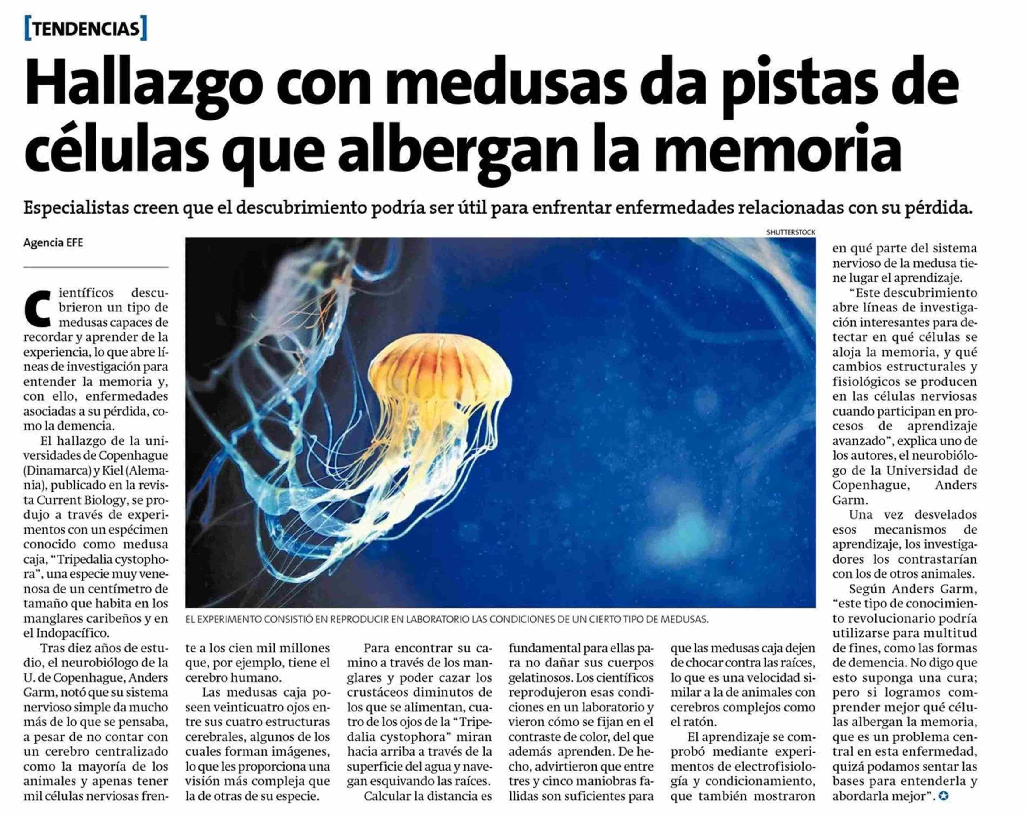 Hallazgo con medusas da pistas de células que albergan la memoria 25-09-2023 La Estrella de Tocopilla |