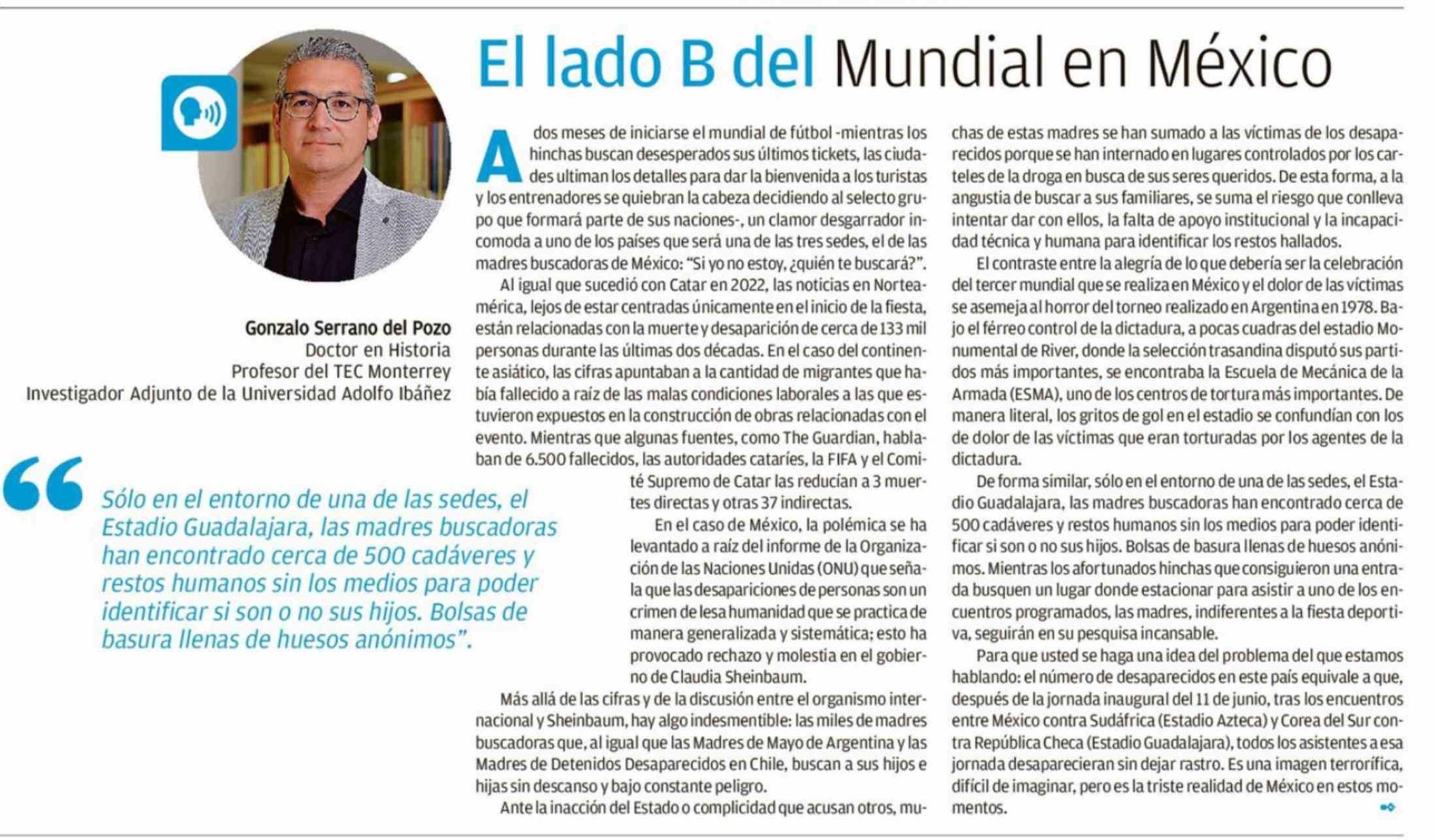 Columnas de Opinión: El lado B del Mundial en México 12-04-2026 El Mercurio de Valparaíso |