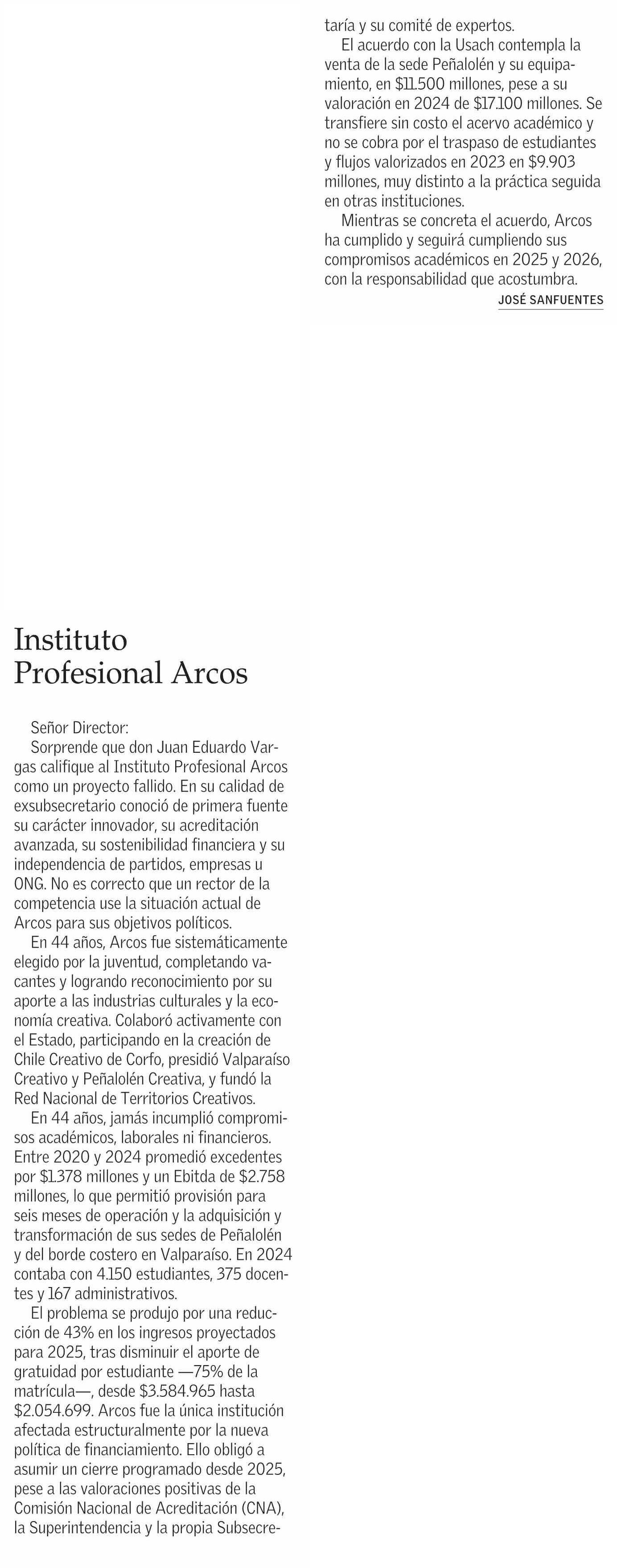 Cartas: Instituto Profesional Arcos 25-02-2026 El Mercurio |