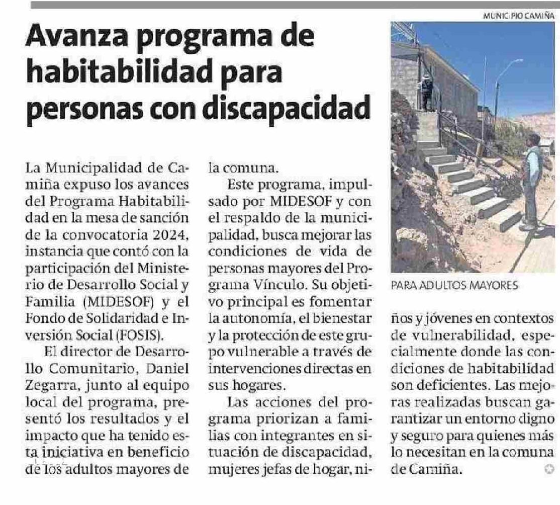 Avanza programa de habitabilidad para personas con discapacidad 04-06-2025 La Estrella de Iquique |