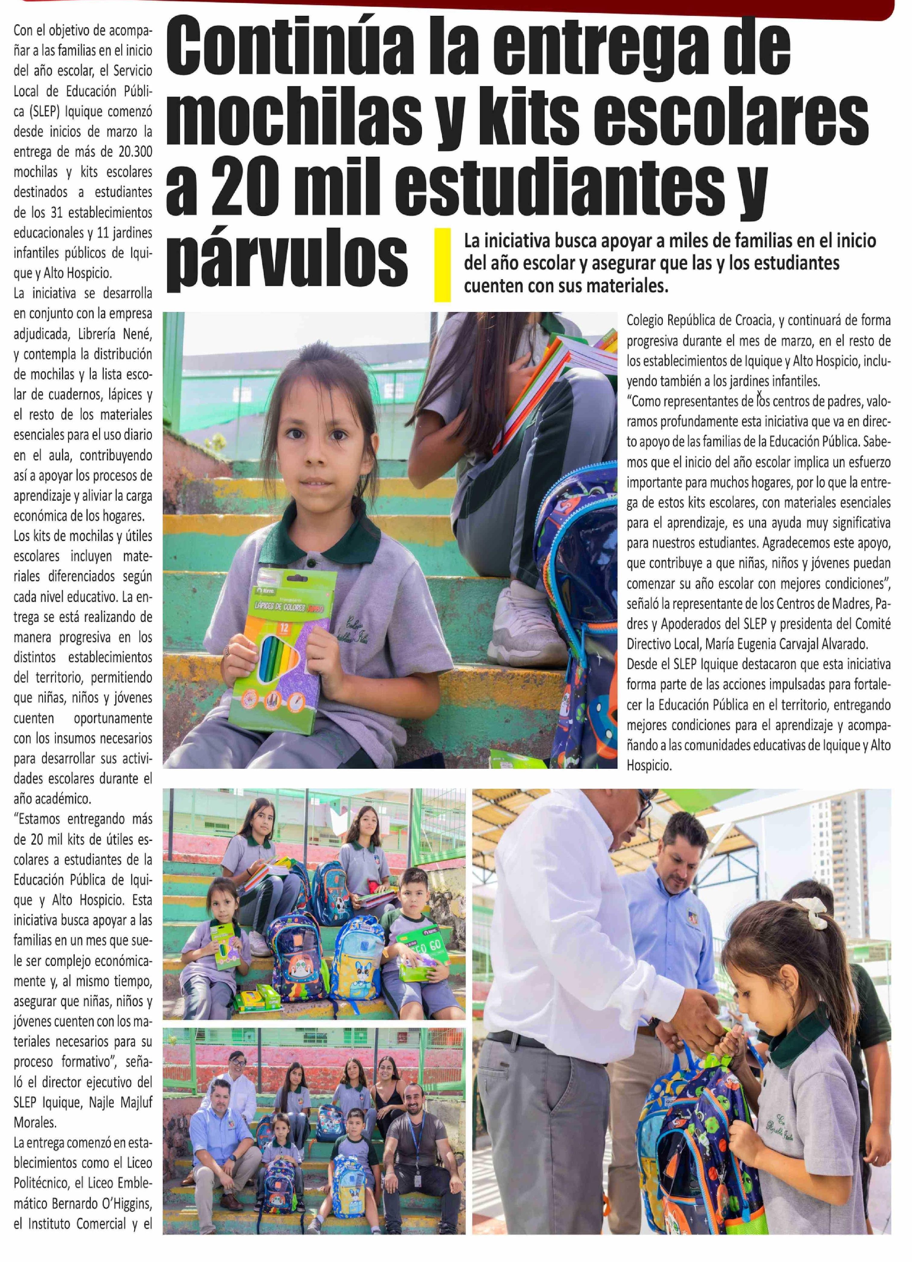 | Título: | Continúa la entrega de mochilas y kits escolares a 20 mil estudiantes y párvulos | |