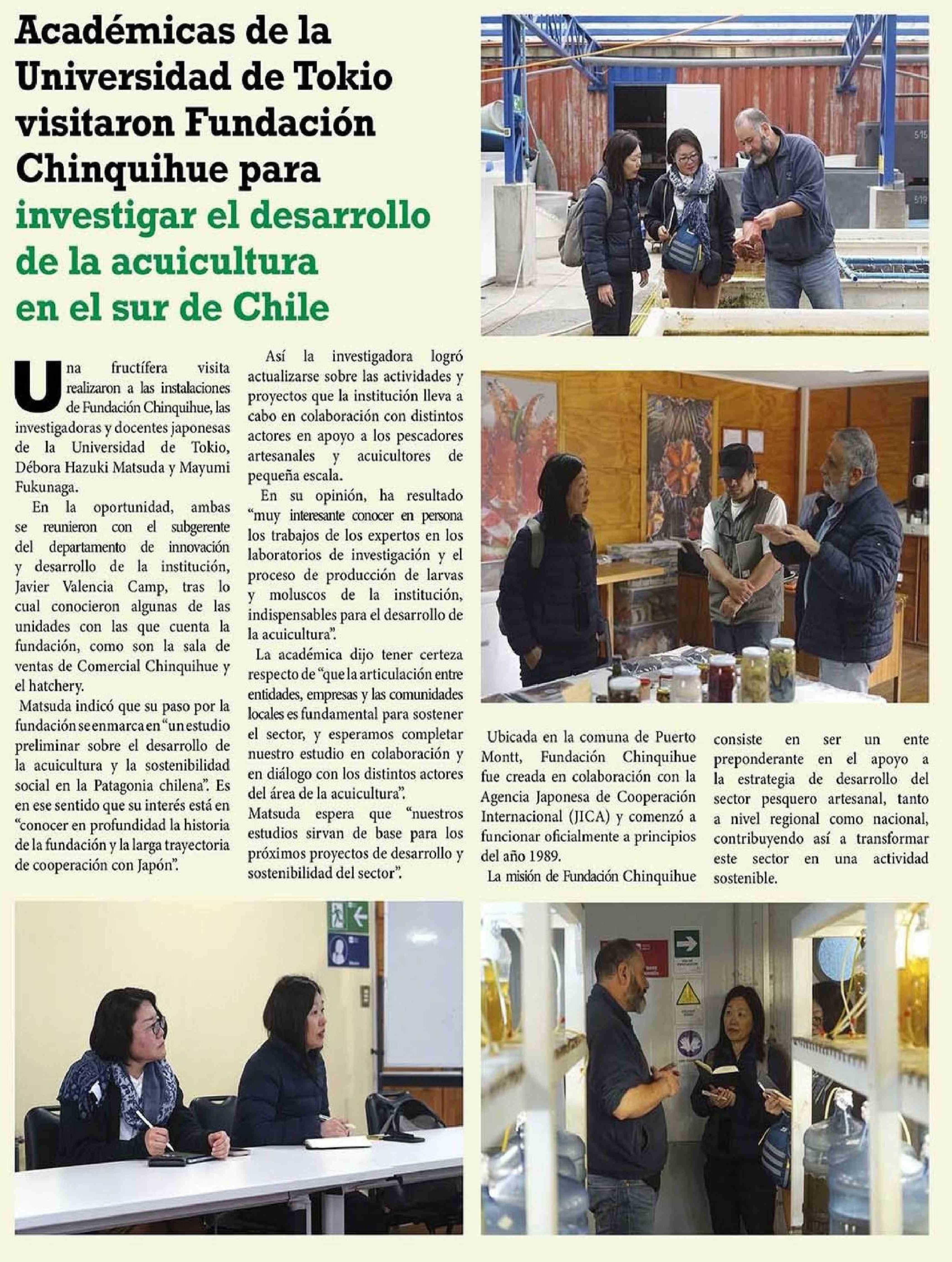 Título: Académicas de la Universidad de Tokio visitaron Fundación Chinquihue para investigar el desarrollo de la acuicultura en el sur de Chile