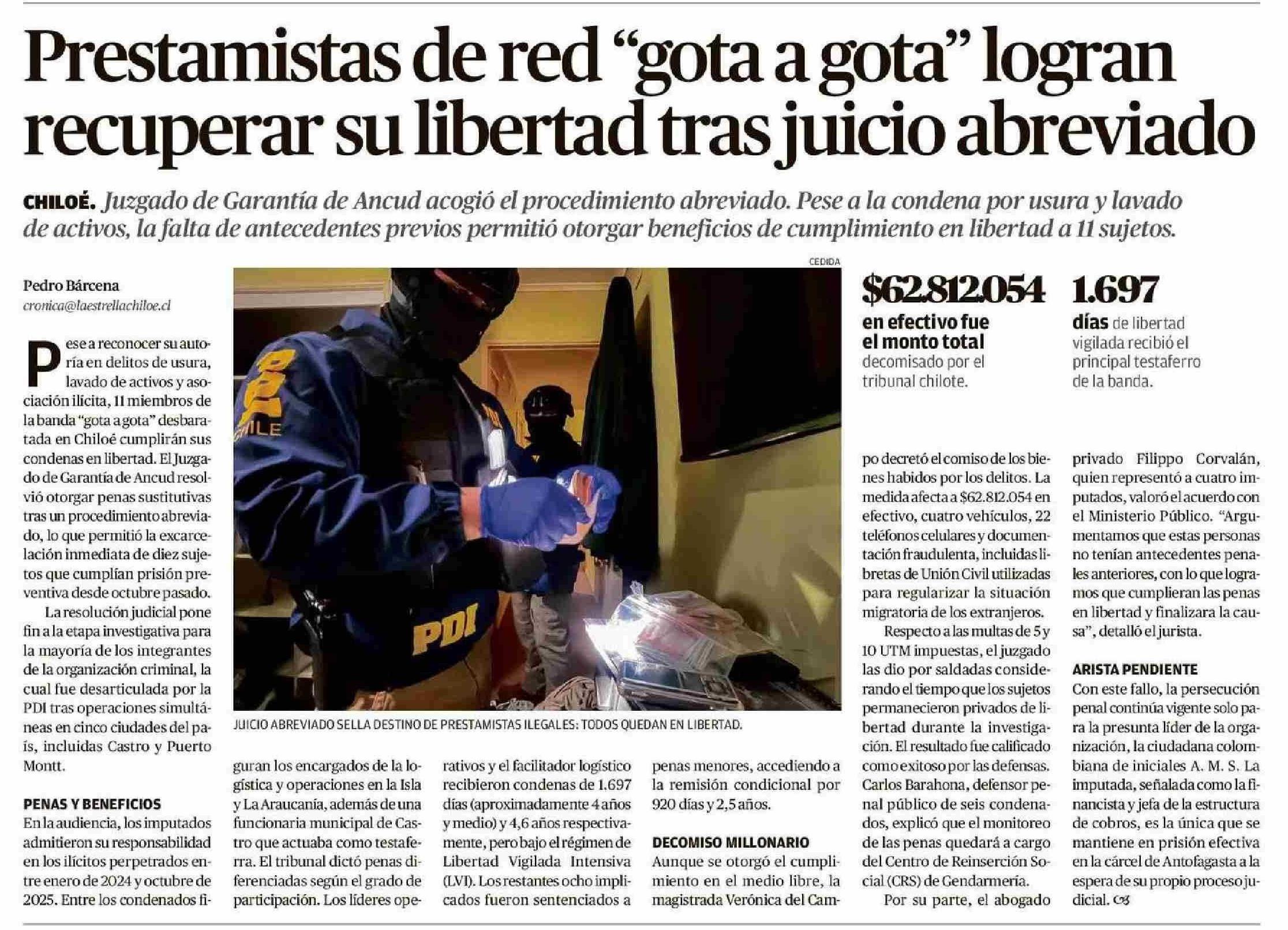 Prestamistas de red "gota a gota" logran recuperar su libertad tras juicio abreviado 08-01-2026 El Llanquihue |