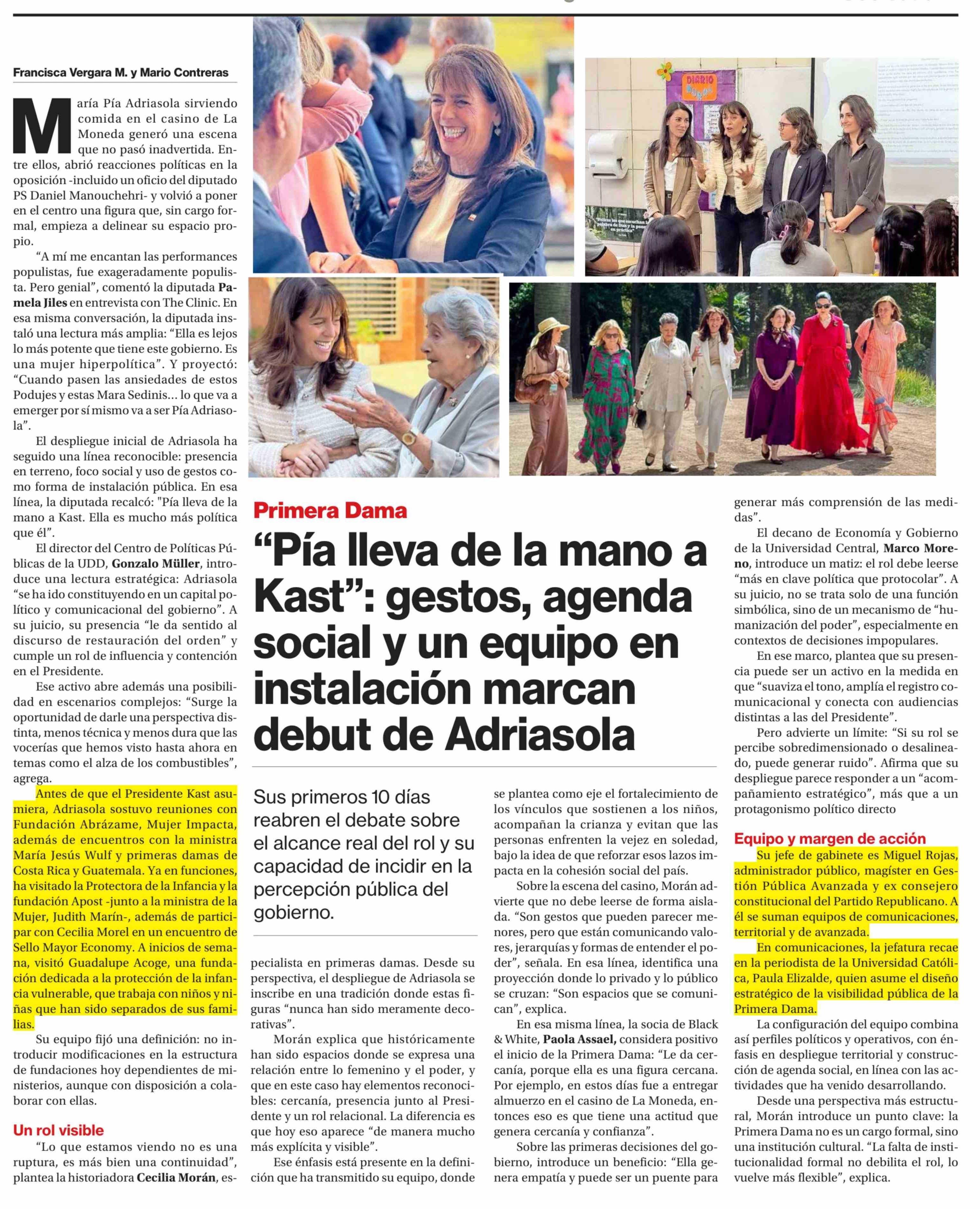 | Título: | "Pía lleva de la mano a Kast": gestos, agenda social y un equipo en instalación marcan debut de Adriasola |