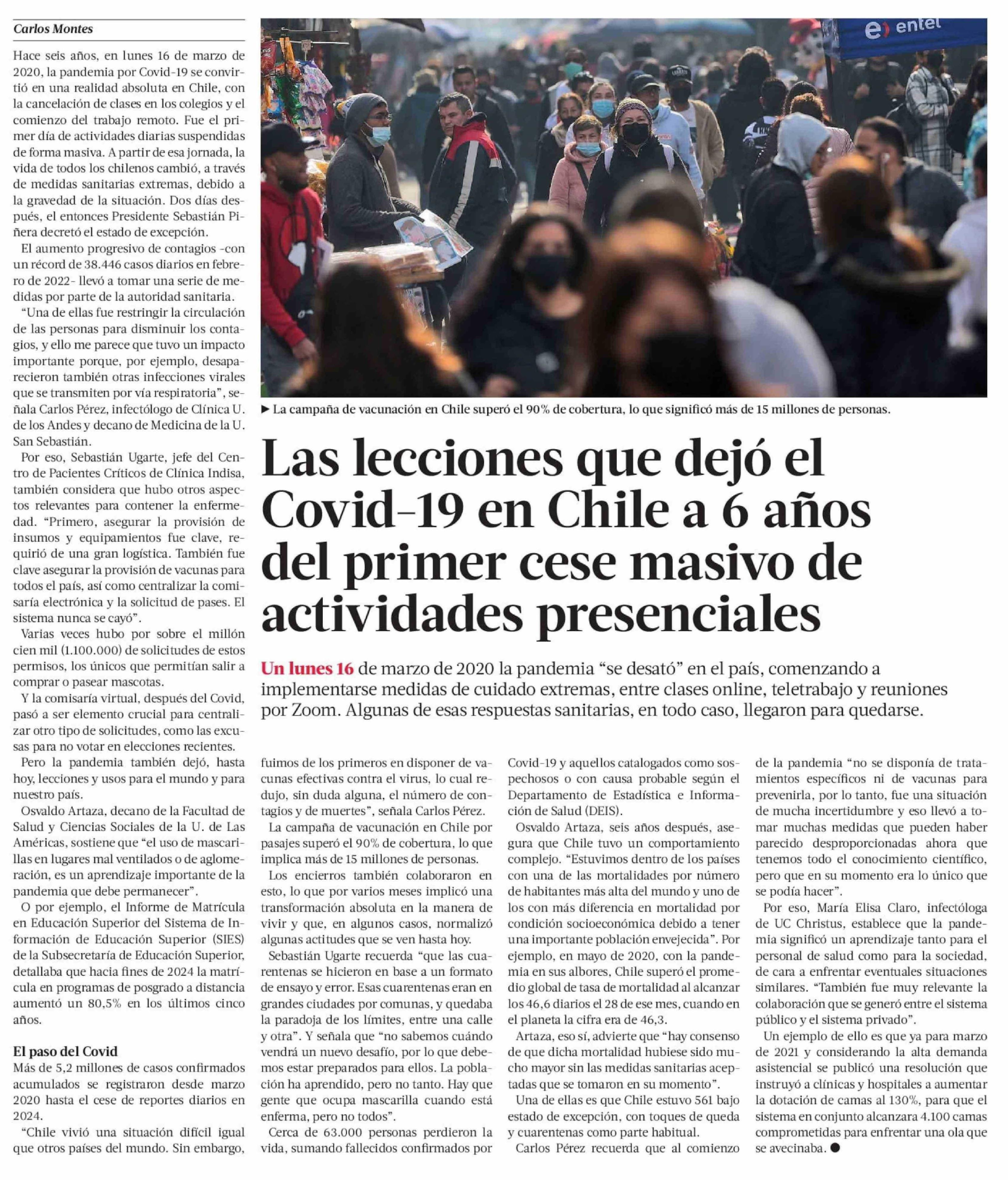 Las lecciones que dejó el Covid-19 en Chile a 6 años del primer cese masivo de actividades presenciales 17-03-2026 La Tercera |