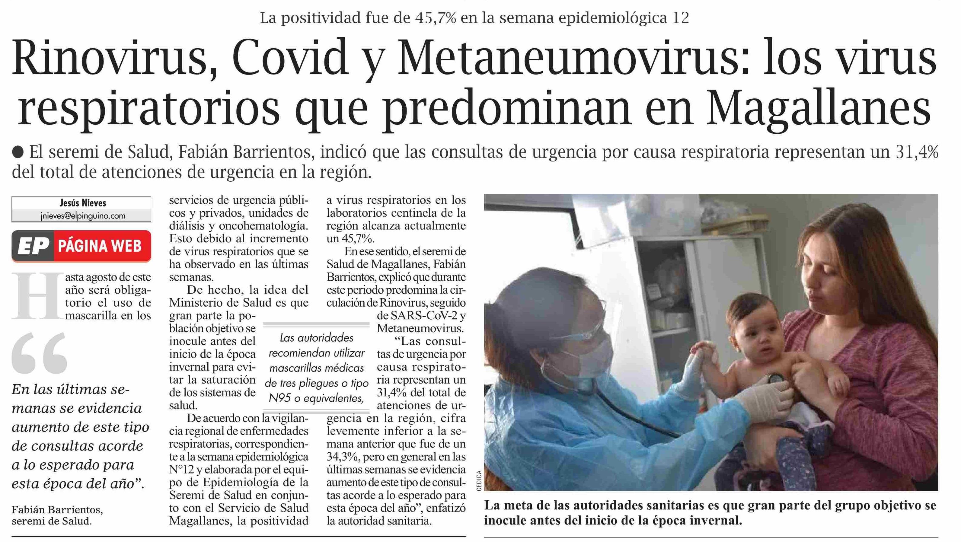 Título: Rinovirus, Covid y Metaneumovirus: los virus respiratorios que predominan en Magallanes