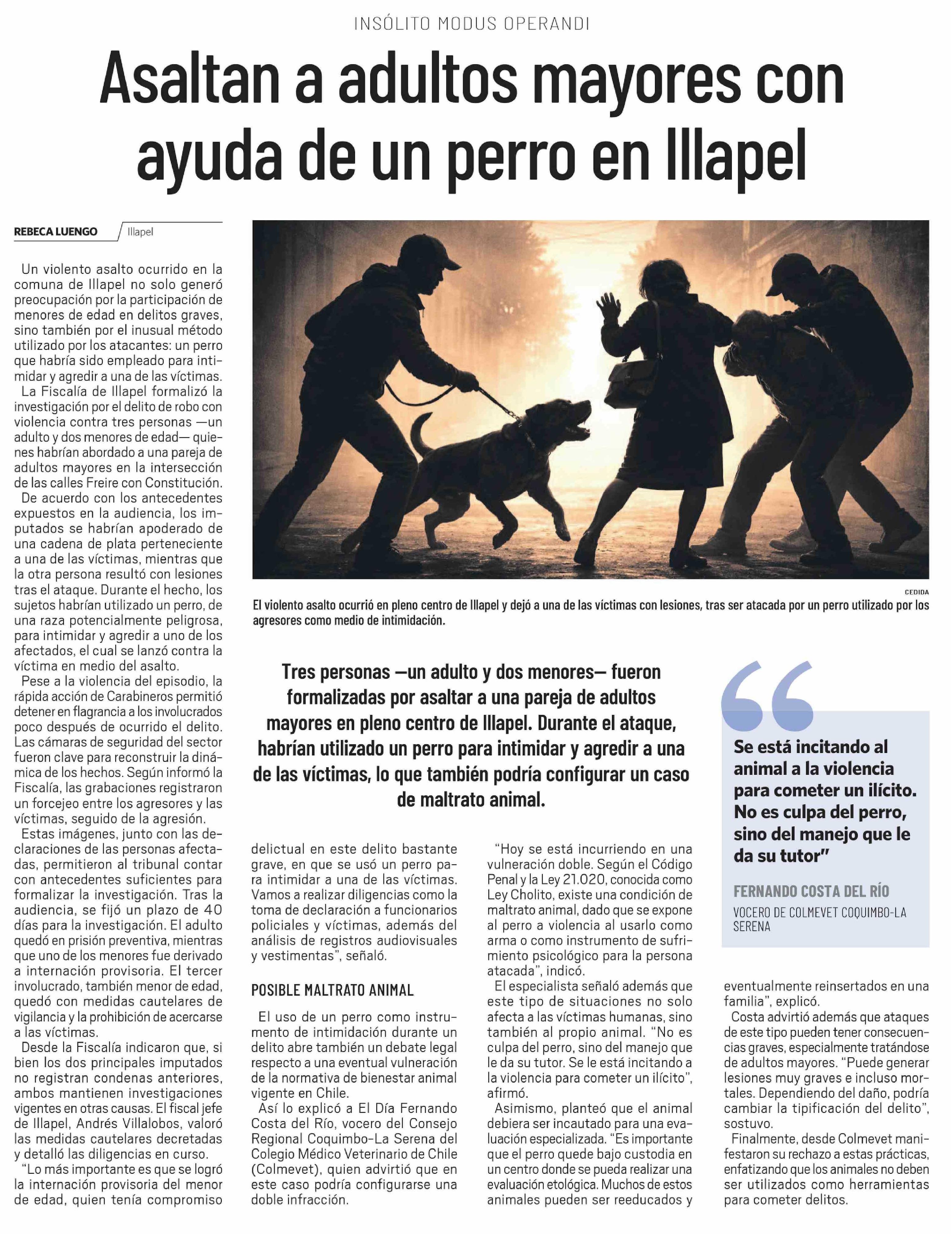 | Título: | Asaltan a adultos mayores con ayuda de un perro en Illapel |
