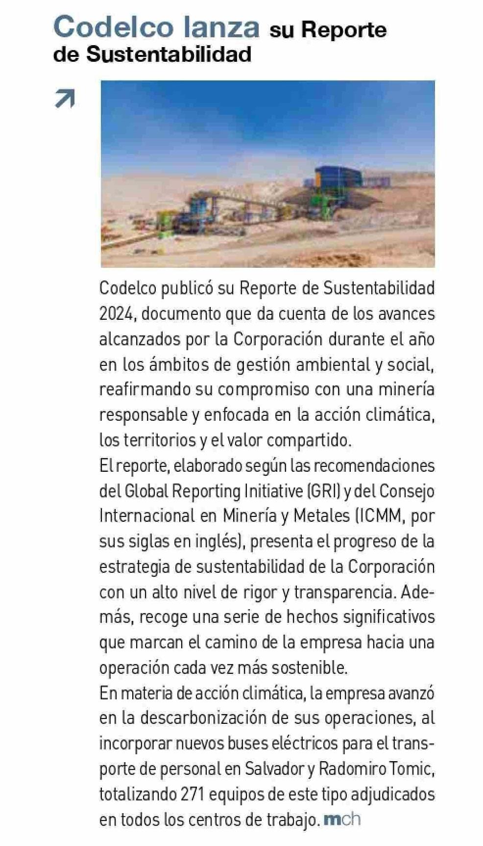 Codelco lanza su Reporte de Sustentabilidad 25-06-2025 Revista Minería Chilena |
