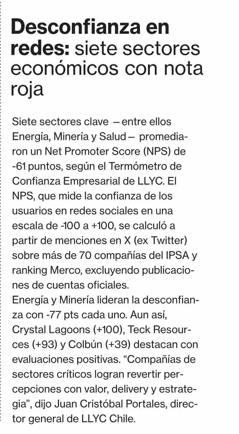 Desconfianza en redes: siete sectores económicos con nota roja 30-05-2025 La Segunda |