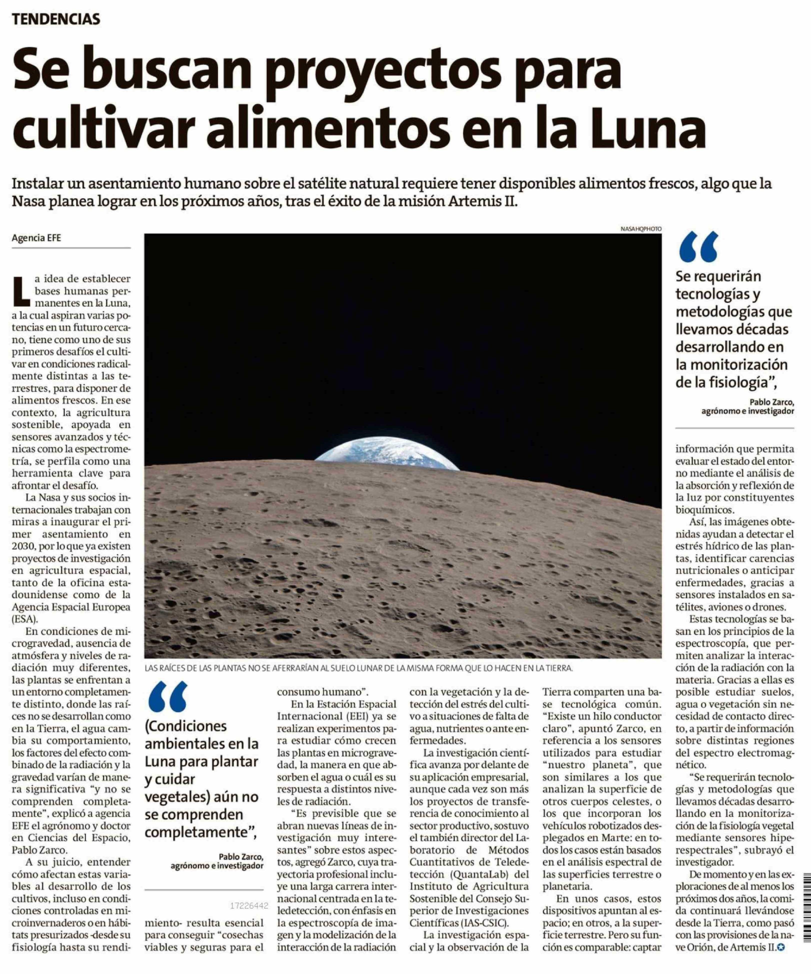 Se buscan proyectos para cultivar alimentos en la Luna 19-04-2026 El Líder |