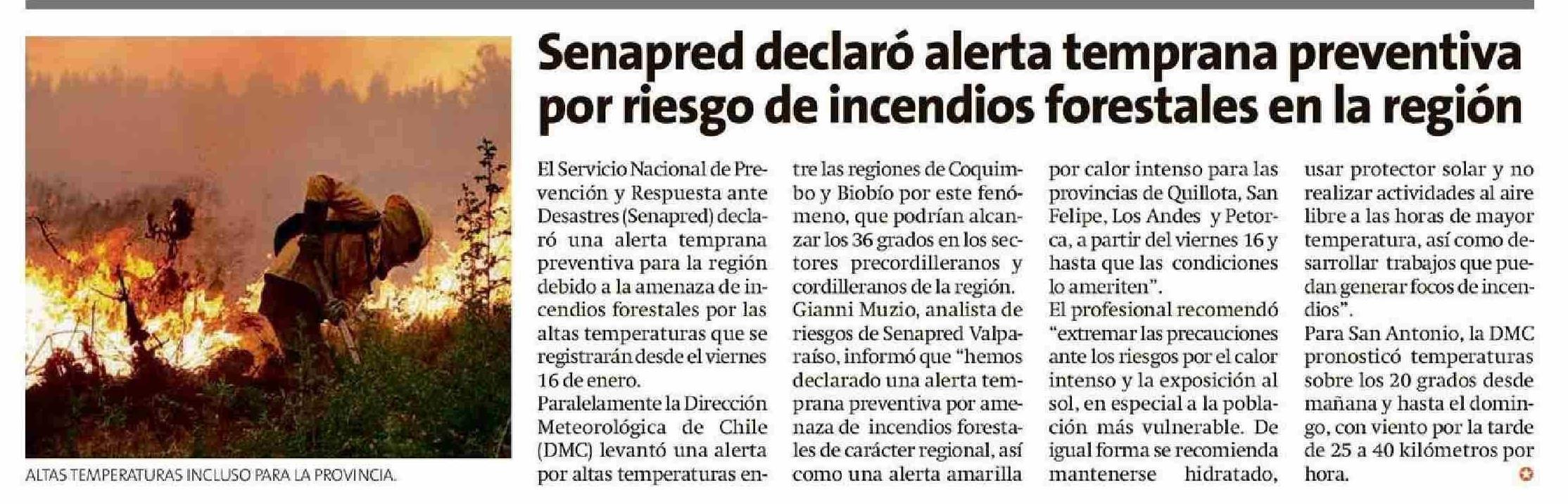 Título: Senapred declaró alerta temprana preventiva por riesgo de incendios forestales en la región
